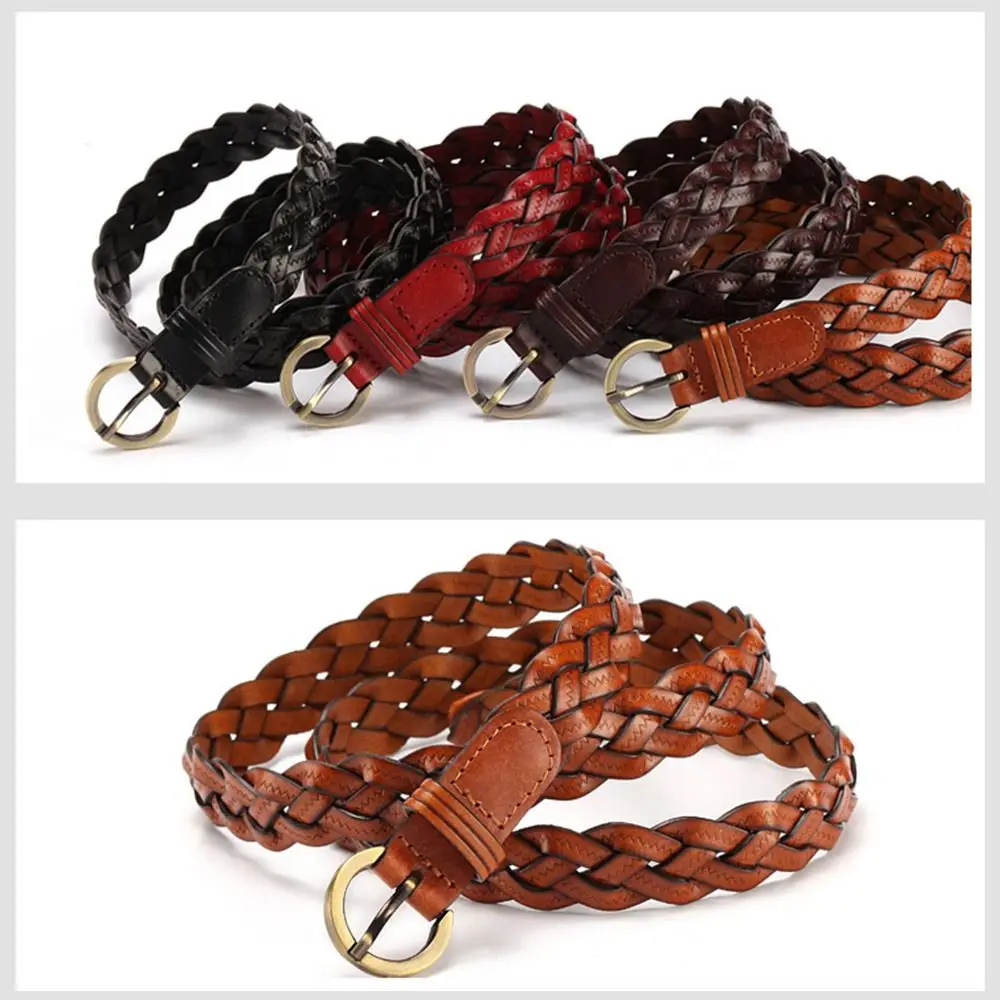 Ceinture tressée en cuir de vachette sauvage vintage pour femmes, ceinture à broche, ceinture tissée, ceintures de robe pour dames |