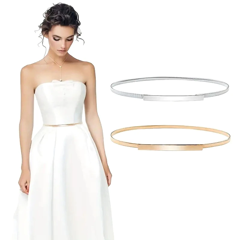 Ceintures élastiques en chaîne dorée pour femmes, taille en métal argenté, feuille extensible, ceinture dorée, jupe habillée, Riem SKinnny |