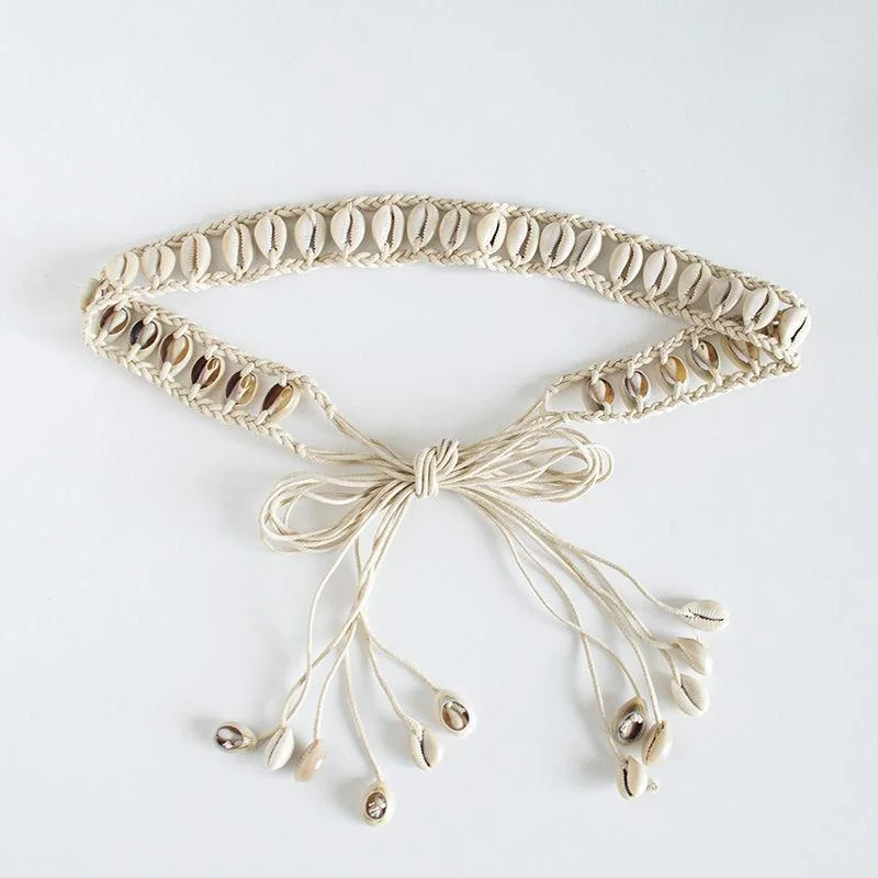 Ceintures pour femmes noeud ceinture été Boho coquille perle robe jean ceinture femme plage accessoire Beige cire cordon