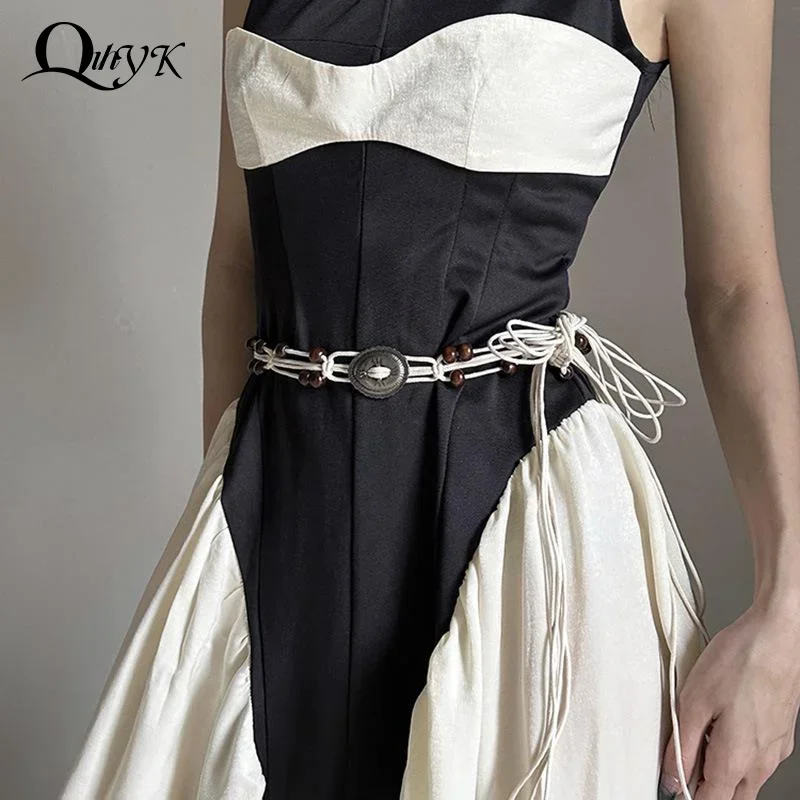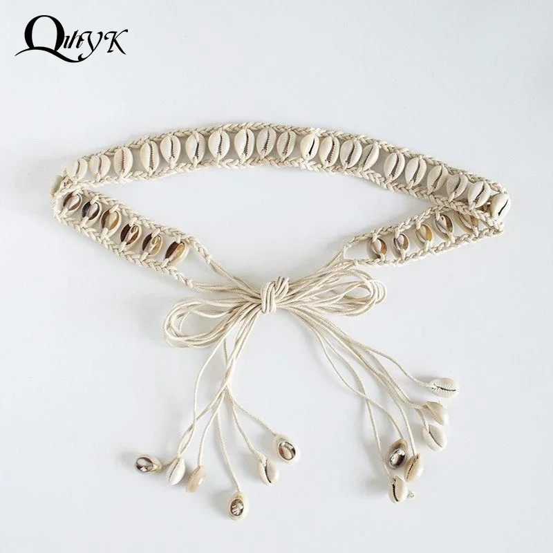 Ceintures pour femmes noeud ceinture été Boho coquille perle robe jean ceinture femme plage accessoire Beige cire cordon