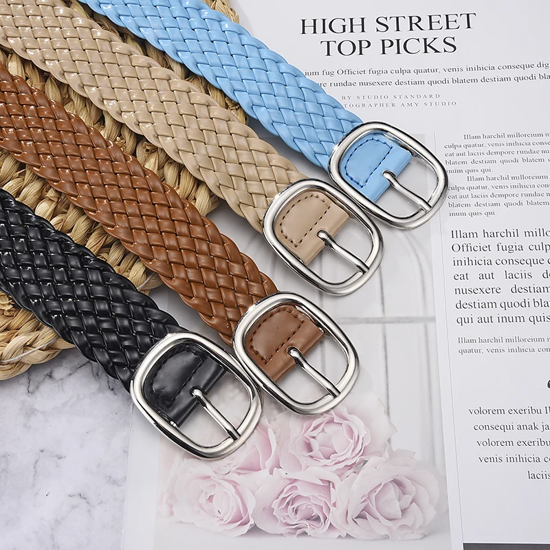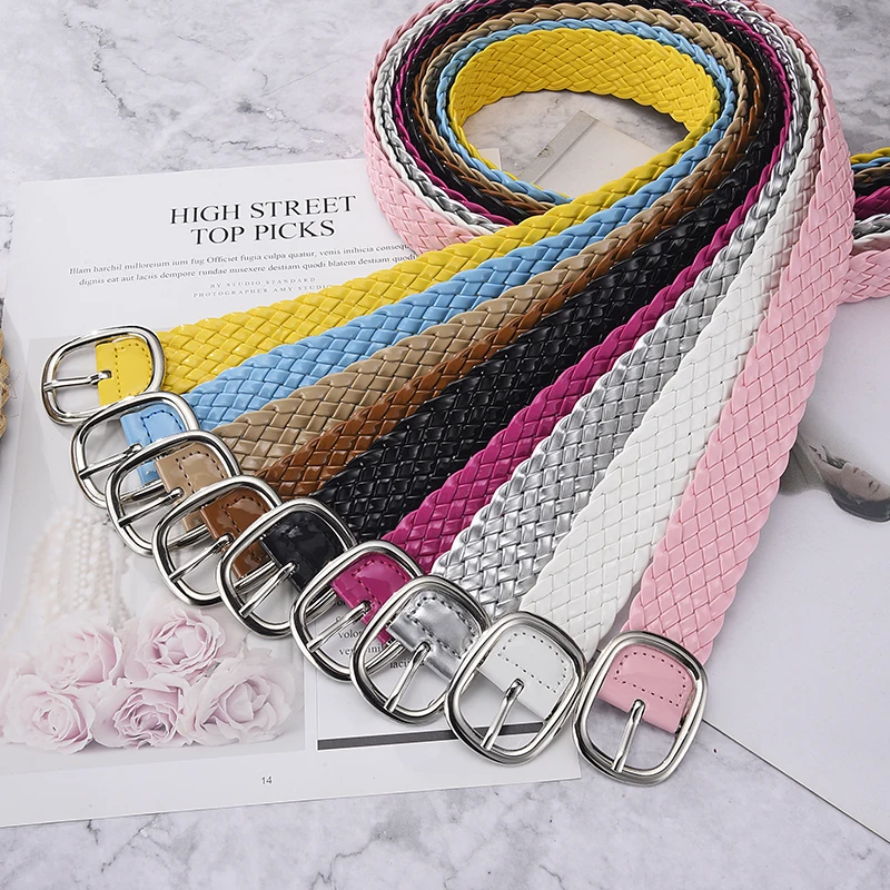 Ceintures tressées de couleurs vives pour femmes, ornement de taille pour dames, sans trous, assorties à tout |