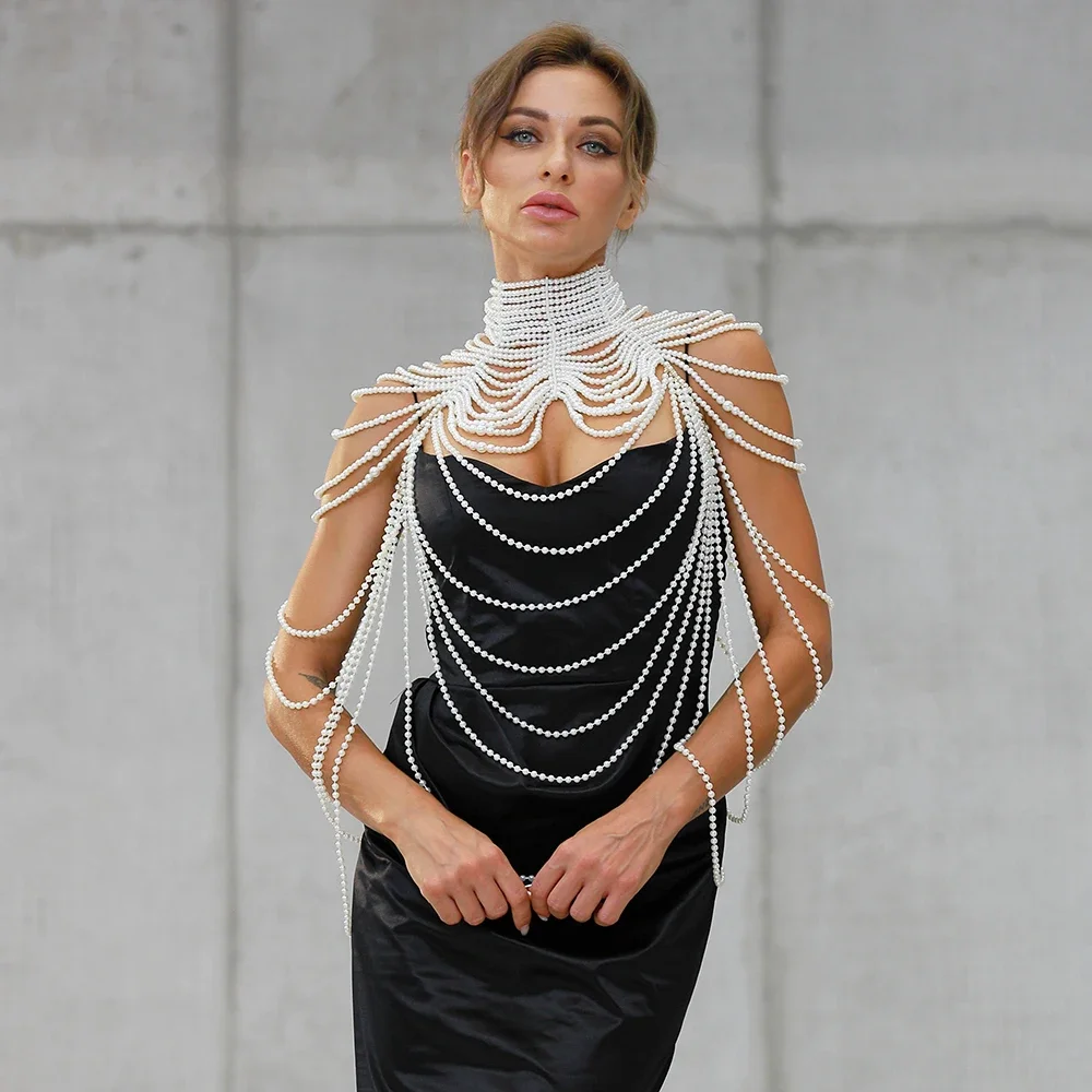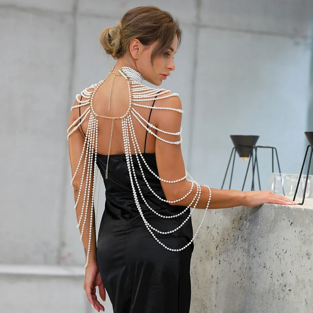Chaîne de corps en perles Sexy pour femmes, colliers châle femme Style Punk col perlé épaule pull longue chaîne bijoux de corps de mariée