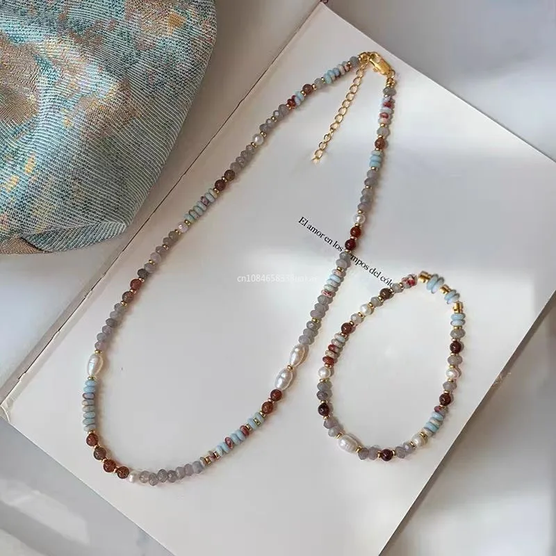 Chaîne de perles en pierre naturelle tissée à la main, pendentifs en perles, accessoires luxueux pour femmes, bijoux à la mode |