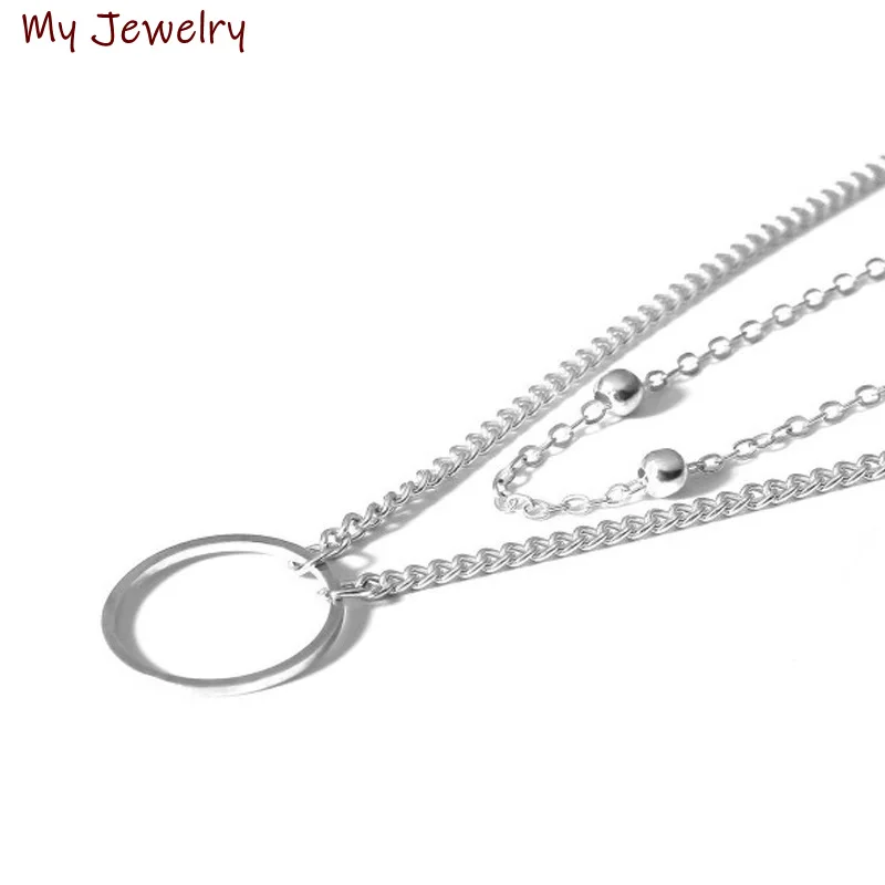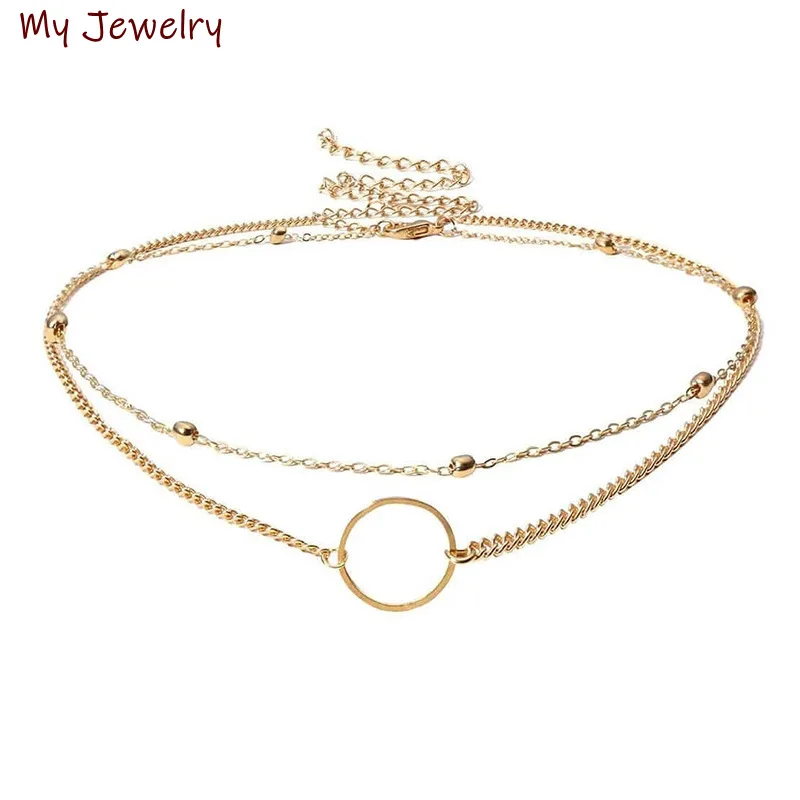 Chaîne de petites perles moderne et Simple, pendentif rond ajouré à deux couches, collier ras du cou pour femmes |