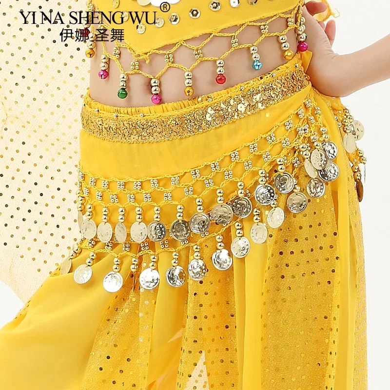 Chaîne de taille de danse du ventre, ceinture de danse indienne Bollywood avec pièces métalliques, écharpe de hanche rouge, accessoires de danse pour enfants pour filles |