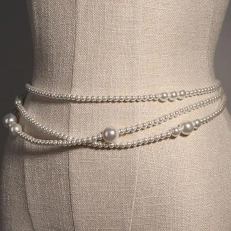 Chaîne de taille en Imitation de perles pour femmes, avec robe, sous-pull, multicouche, chaîne de taille en perles, chaîne de corps Simple pour femmes |