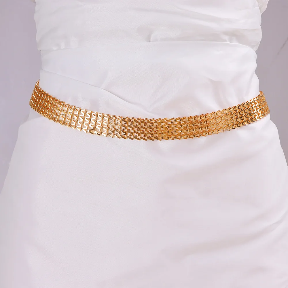 Chaîne de taille en métal doré pour femmes, Punk, ceinture de luxe, Design creux, pour robe, jupe, sangle décorativeChaîne de taille en métal doré pour femmes, Punk, ceinture de luxe, Design creux, pour robe, jupe, sangle décorative