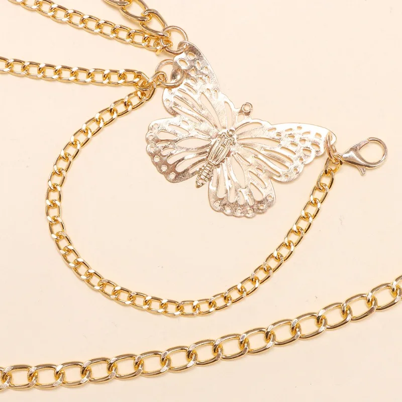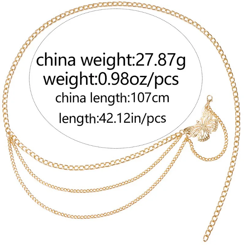 Chaîne de taille papillon élégante pour femmes, métal doré, vent multicouche, ceinture à franges, robe de scène, accessoire de mode, chaîne de pantalon |