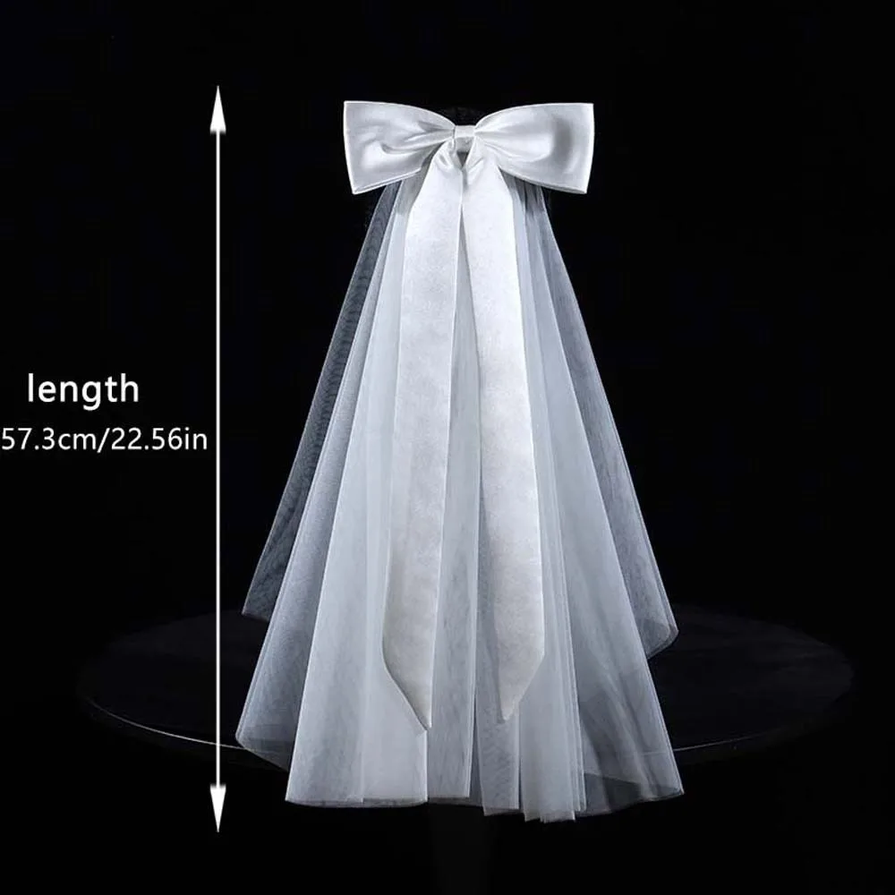 - Aspect romantique et élégant avec le voile en satin et le nœud premium
