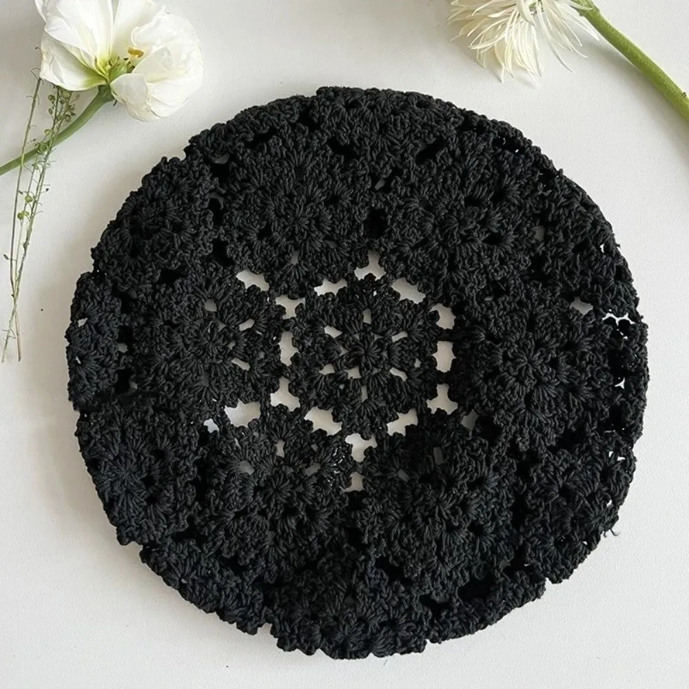 Chapeau à fleurs respirant, Style japonais, grande circonférence de la tête, béret ajouré, couvre-chef fin, bonnet tricoté au Crochet, fête