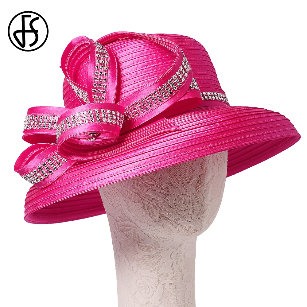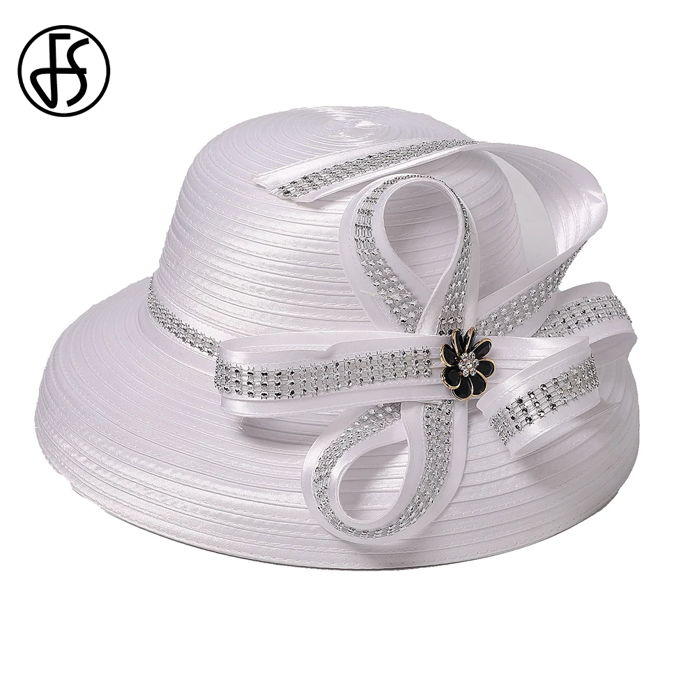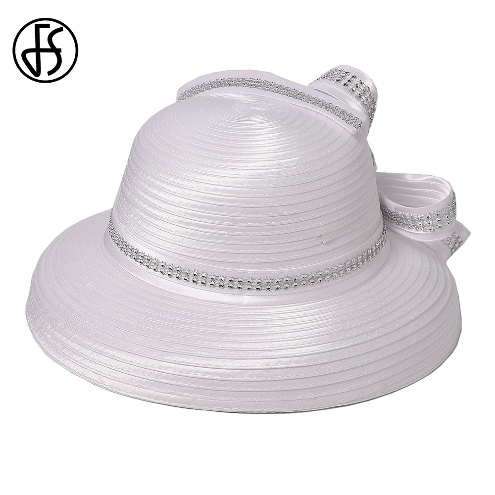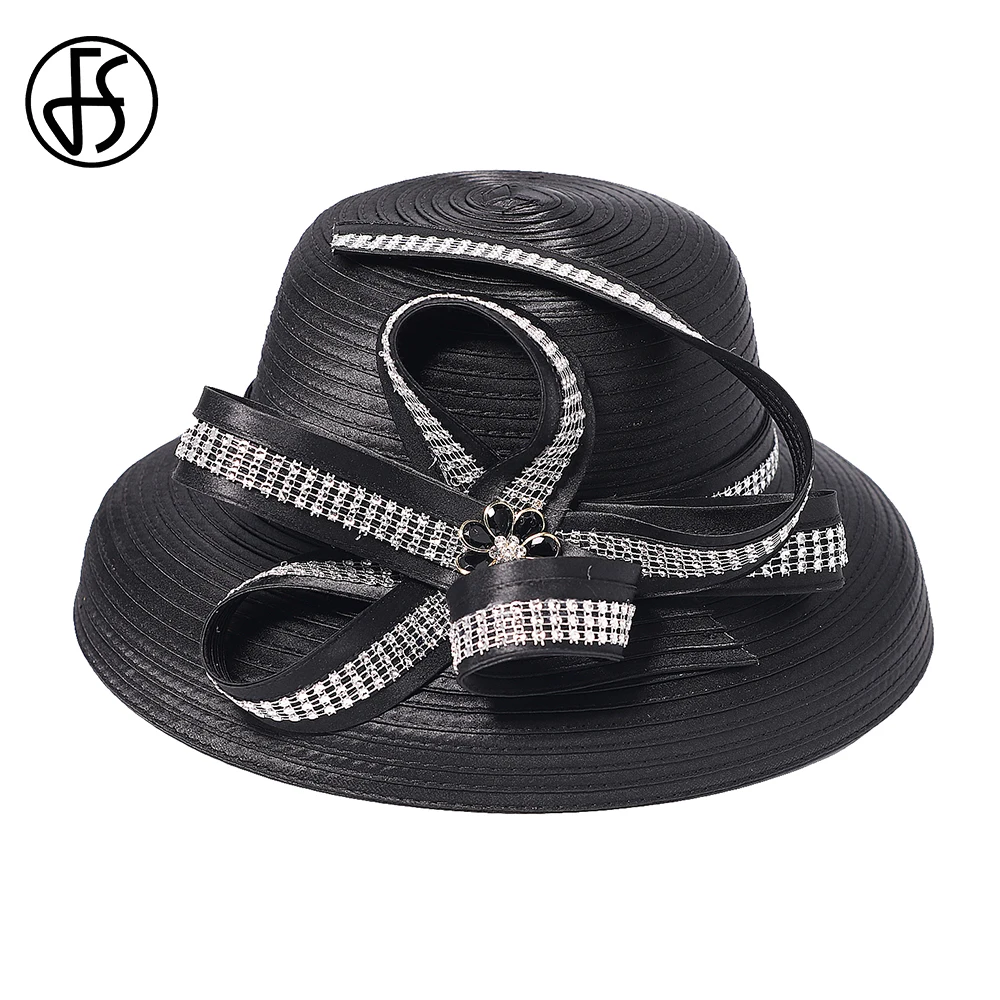 Chapeau en tissu satiné pour femmes, cloche noire à large bord, chapellerie pour Cocktail, thé, fête, Derby, église, accessoire de mode pour dames |