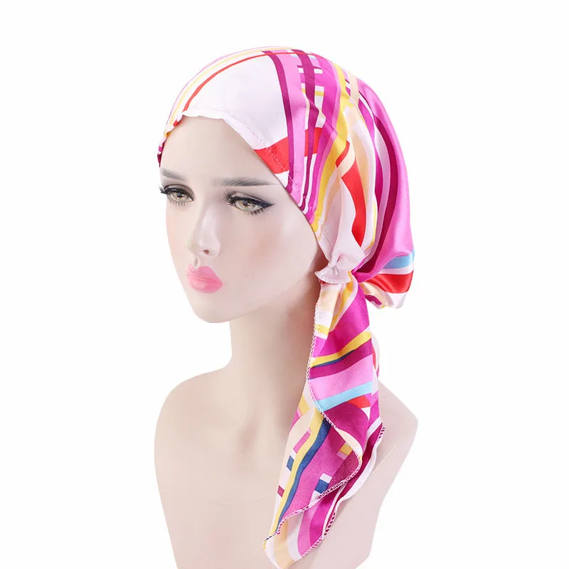 Chapeau pré-noué pour femmes musulmanes, hijab intérieur, bonnet de chimio contre le cancer, turban imprimé floral, vêtements de sauna, écharpe de sauna à longue queue, bonnets, bonnet