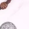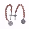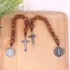 Chapelet de poche catholique pratique avec perles en bois marron, médaille Saint benoît et crucifix.