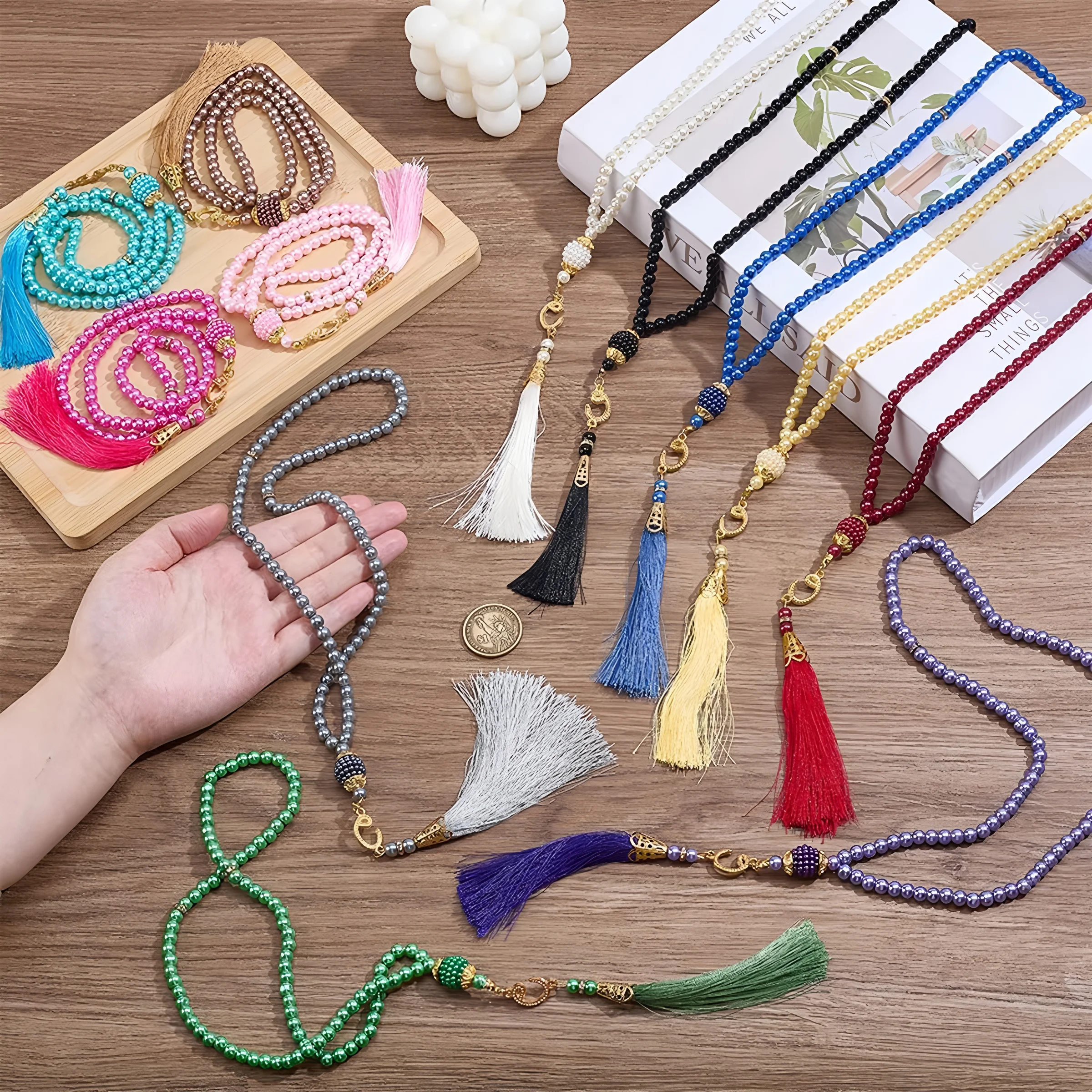 Chapelet de prière musulmane en Imitation de perles, 99 perles, Souvenir religieux, décoration de Festival, Eid al-fitr, chapelet Waf du Ramadan, cadeau islamique