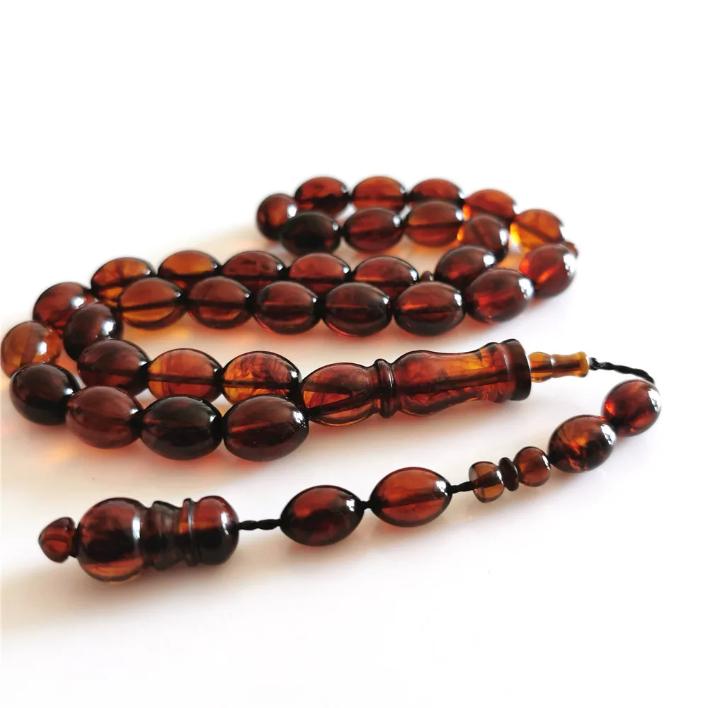 Chapelet islamique misbaha Islam cadeaux café résine ambre forme ovale 11*14mm 33 perles de prière musulman Tasbih Tasbeeh vente en gros |