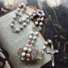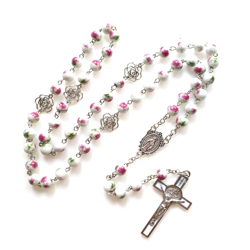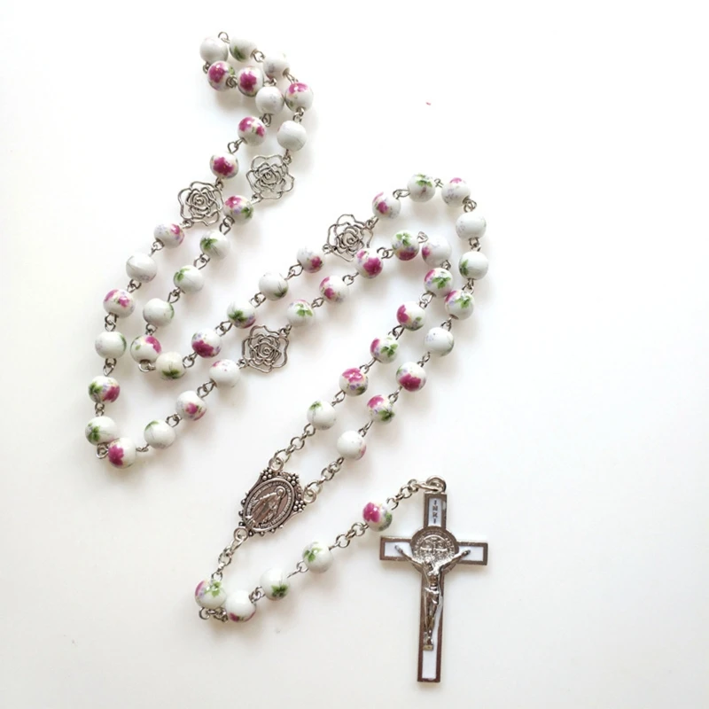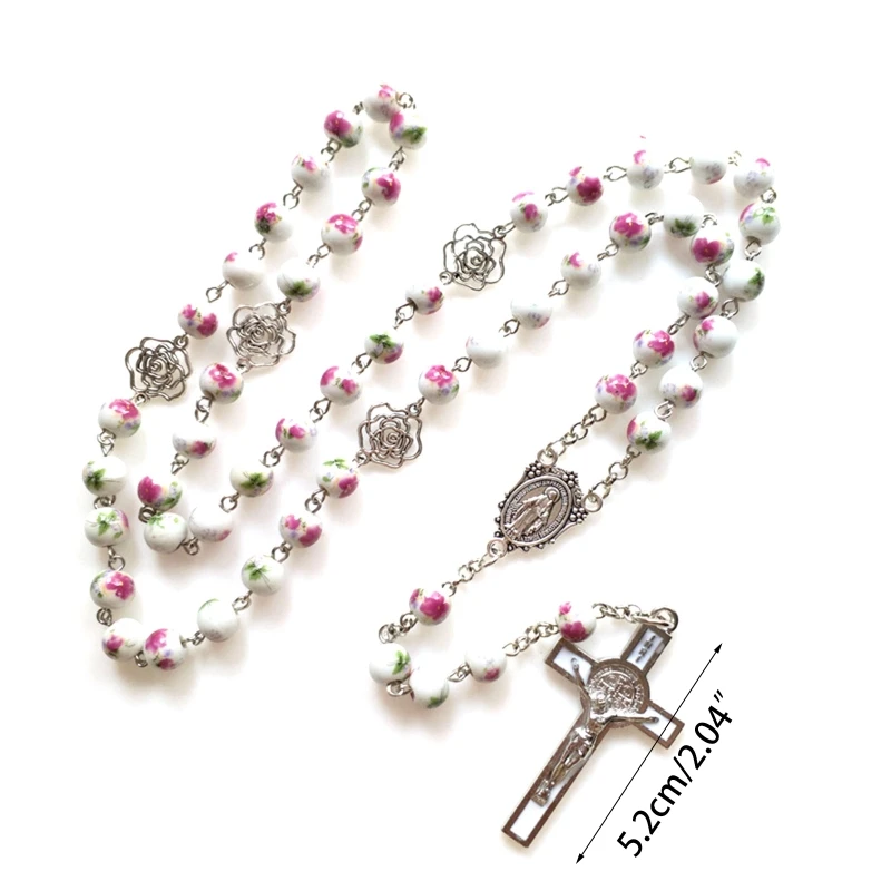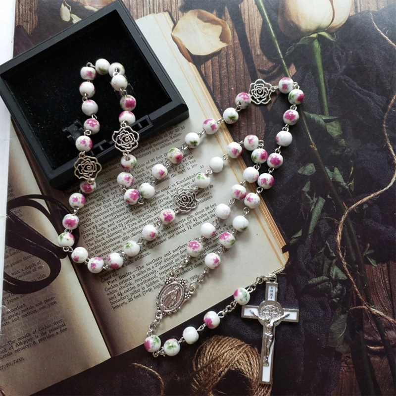 - Produit orné de perles de verre et d'un crucifix, ce qui en fait un bel accessoire religieux