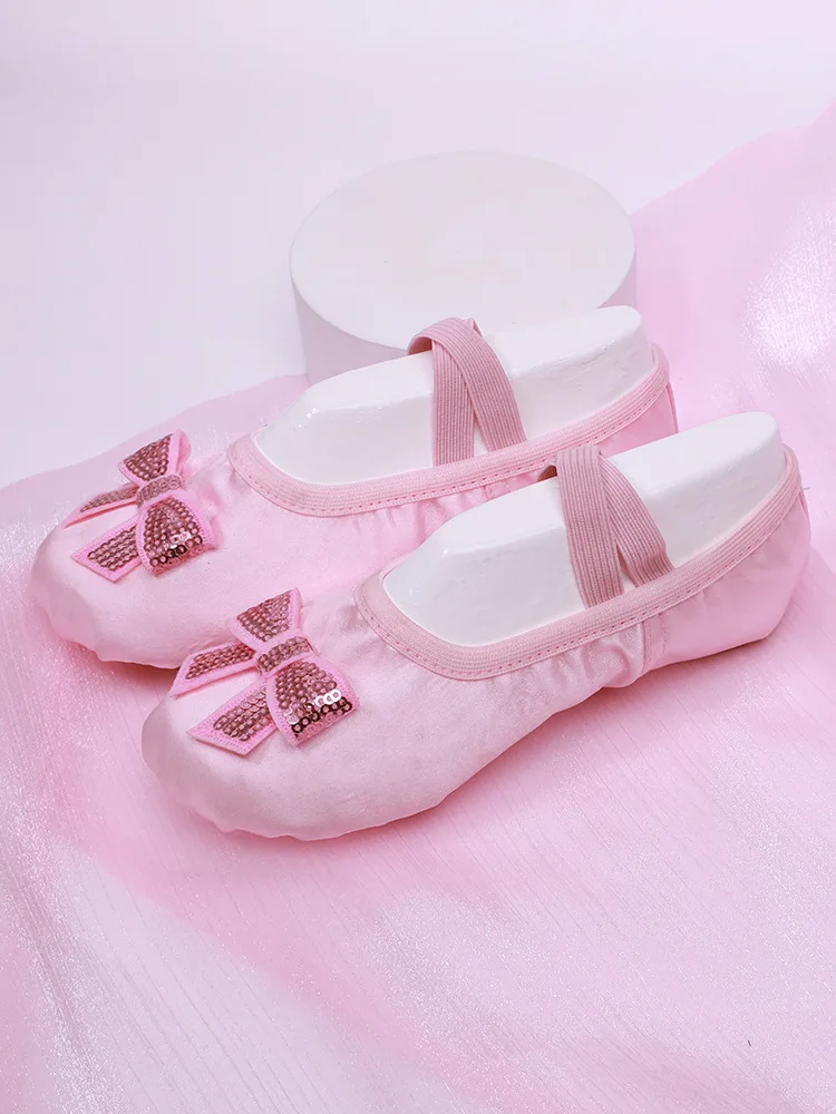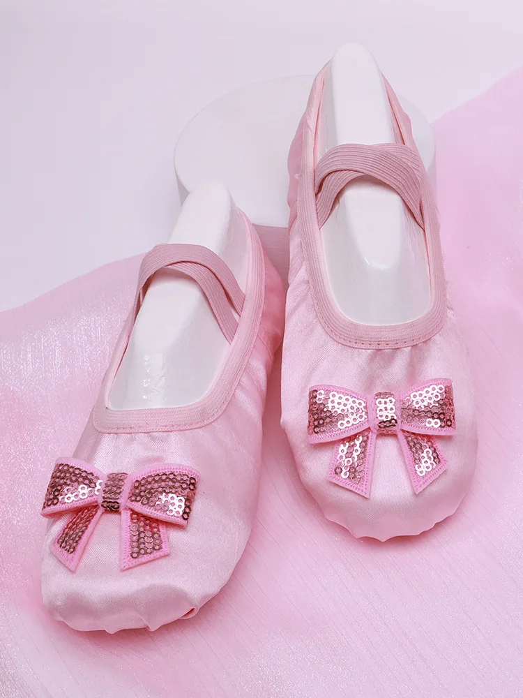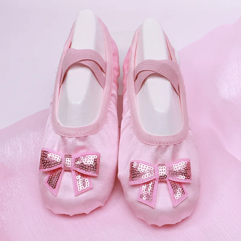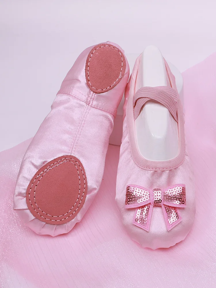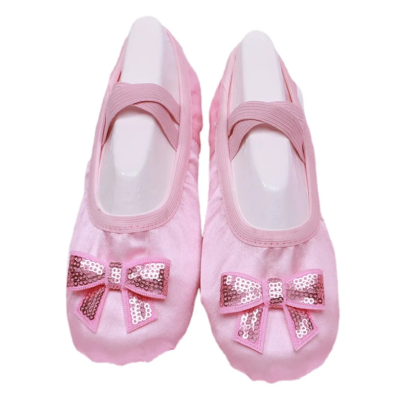 Chaussure de Ballet pour filles, pantoufles en Satin à semelle souple pour enfants, chaussures de danse de Yoga de couleur unie pour femmes