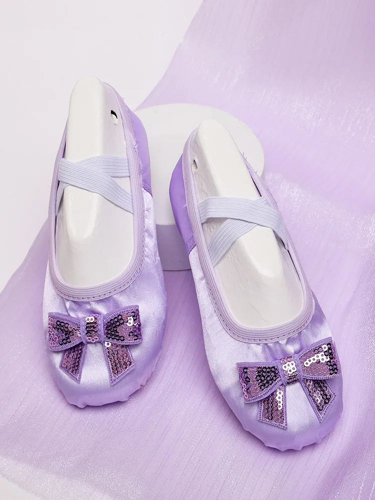 Chaussure de Ballet pour filles, pantoufles en Satin à semelle souple pour enfants, chaussures de danse de Yoga de couleur unie pour femmes |