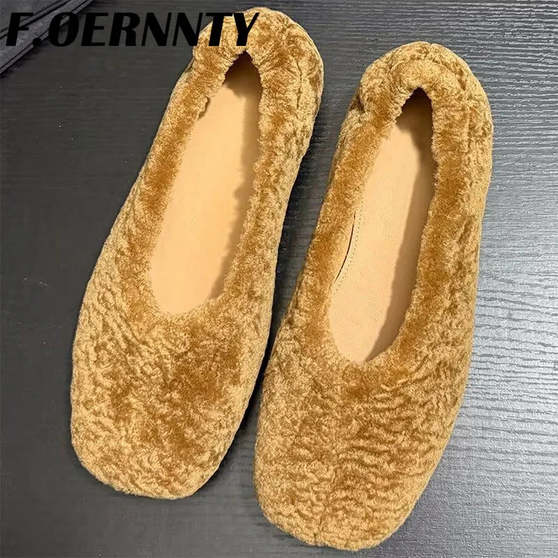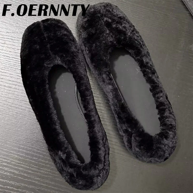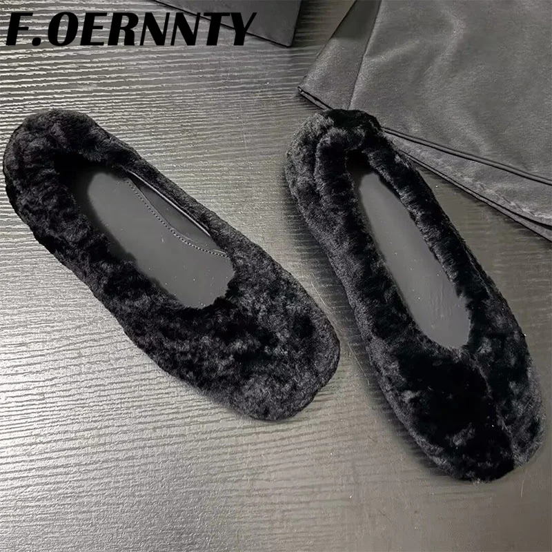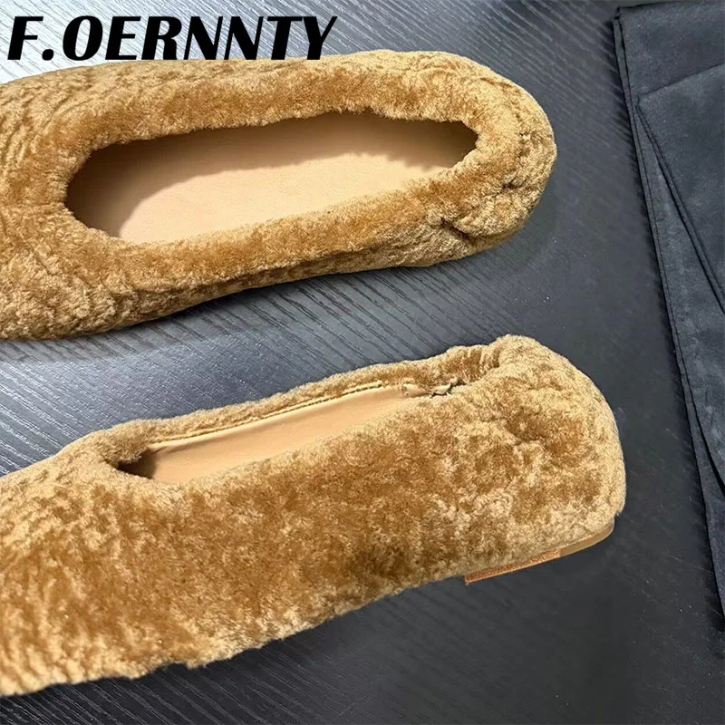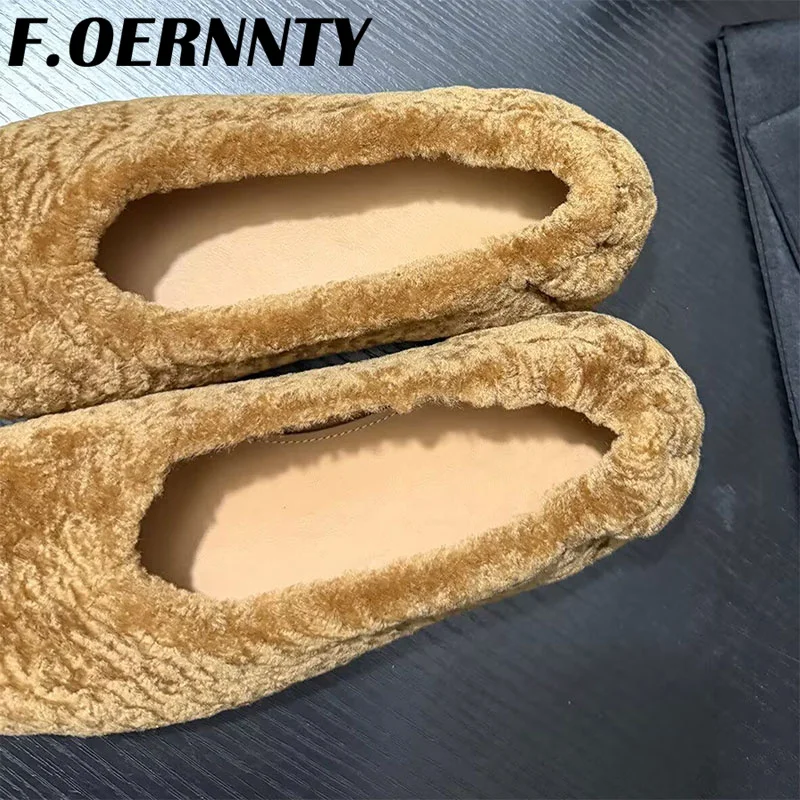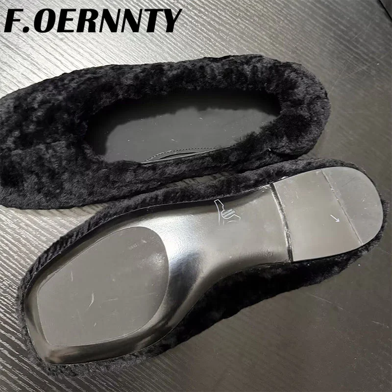 Chaussures à talons plats en peluche peu profondes pour femmes, bout carré, confortables et chaudes, Mules d'extérieur paresseuses à enfiler, nouvelle collection automne 2025 |