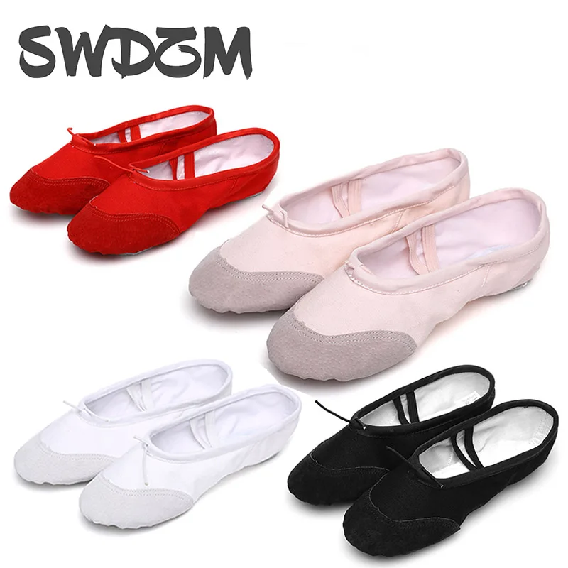 Chaussures de Ballet en toile pour filles, pantoufles de danse plates pour adultes, femmes et enfants, chaussures de danse classiques à semelle fendue en cuir souple