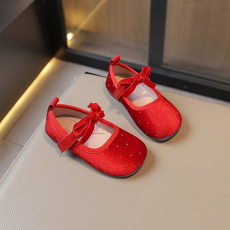 Chaussures de princesse en velours scintillant pour enfants, ballerines élégantes d'automne, couleur unie, adorables et polyvalentes, Mary Janes pour filles 23-34 |