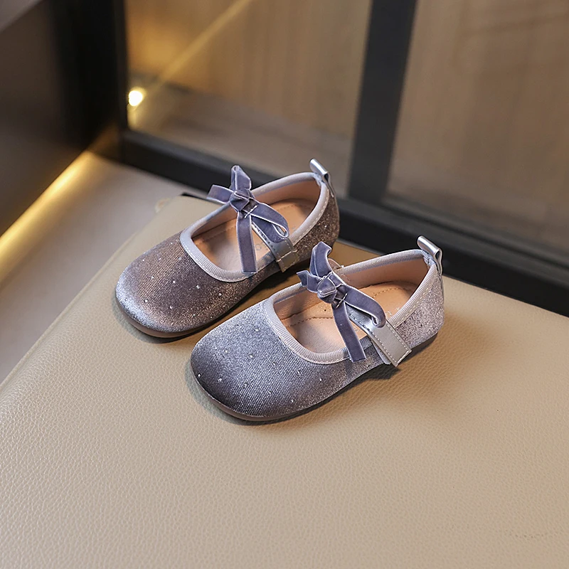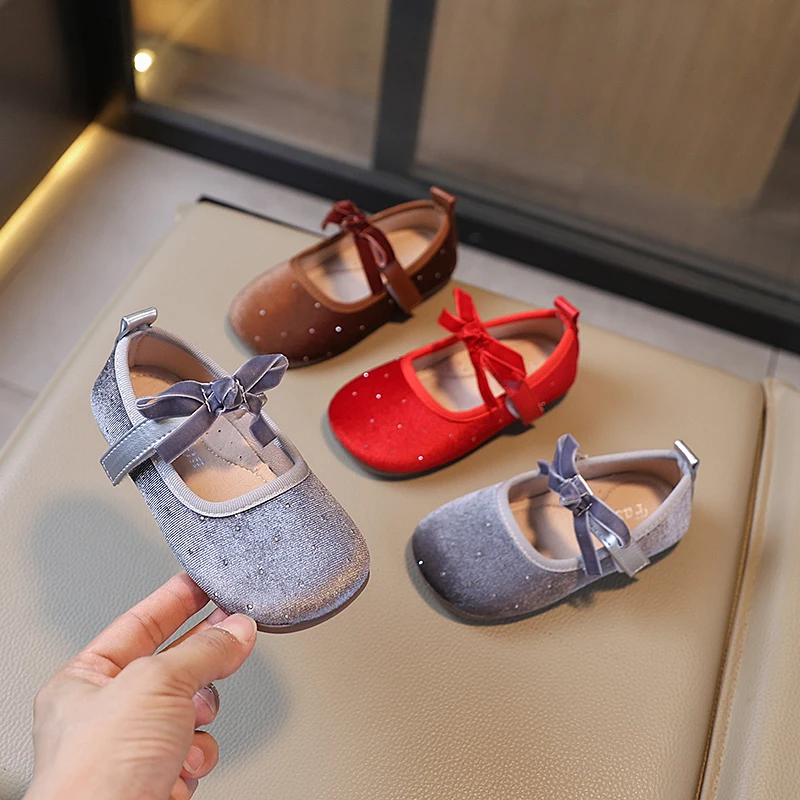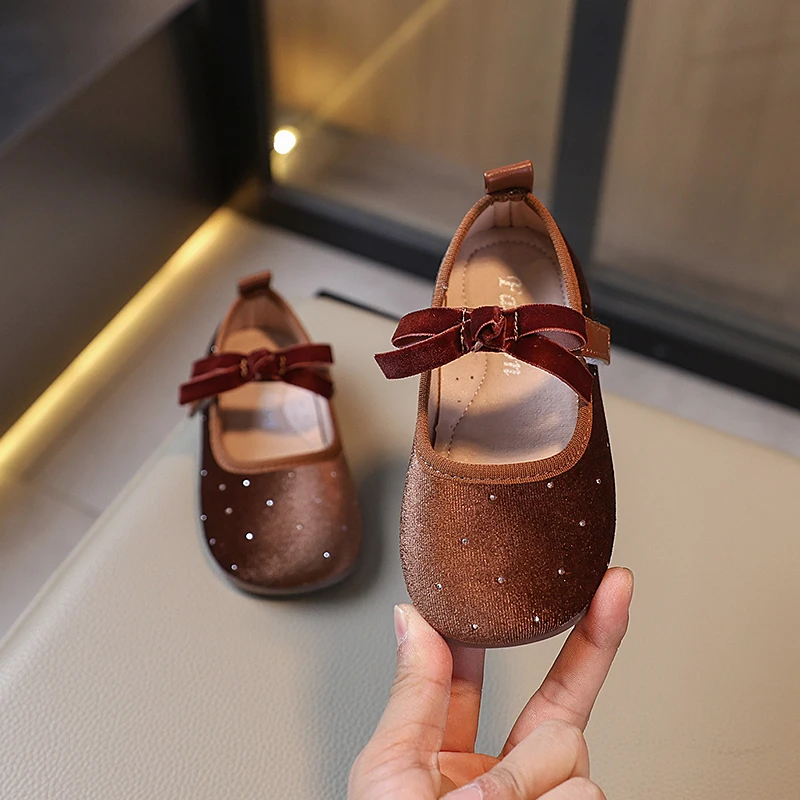 Chaussures de princesse en velours scintillant pour enfants, ballerines élégantes d’automne, couleur unie, adorables et polyvalentes, Mary Janes pour filles 23-34