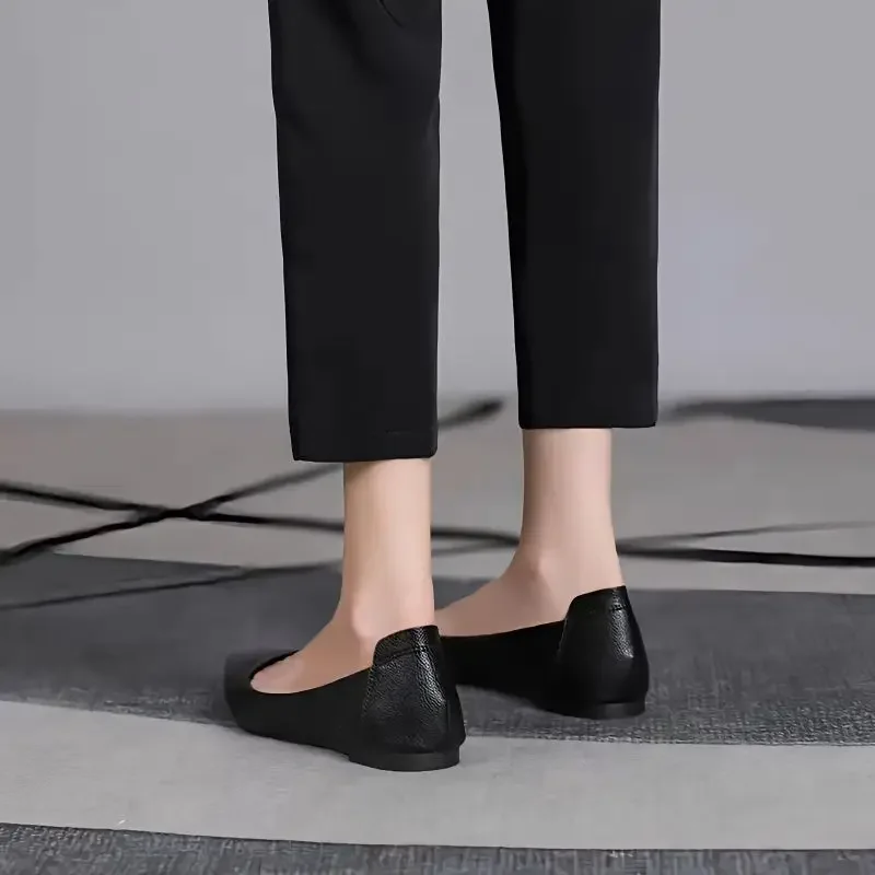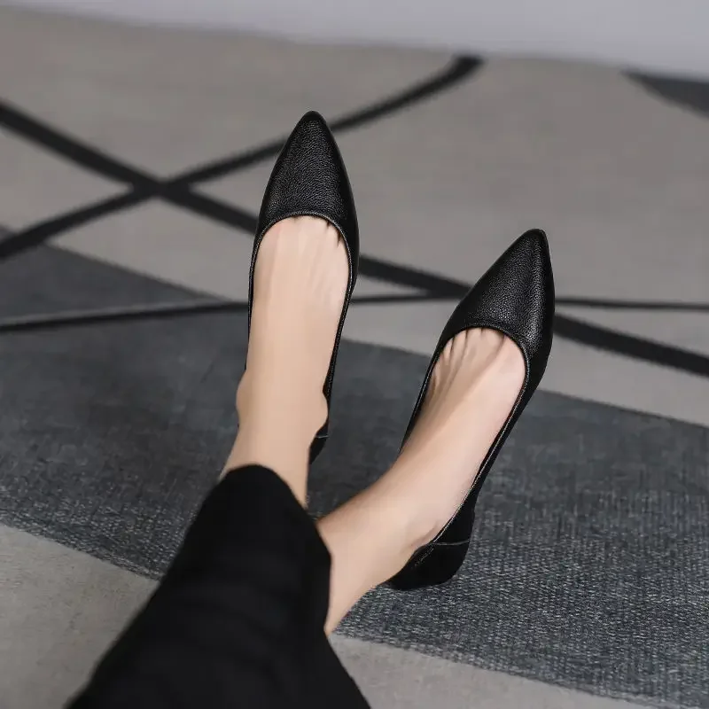 "J'ai commandé ces chaussures noires de bureau il y a quelques semaines et j'en suis très satisfaite. Elles sont vraiment confortables et de très bonne qualité, le cuir est doux et s'adapte parfaitement à mes pieds. Le design est élégant et chic, parfait pour le travail. La seule petite chose, c'est que les semelles manquent un peu de grip sur les sols glissants, mais ce n'est qu'un détail. Dans l'ensemble, c'est une excellente paire de chaussures que je recommande vivement !"