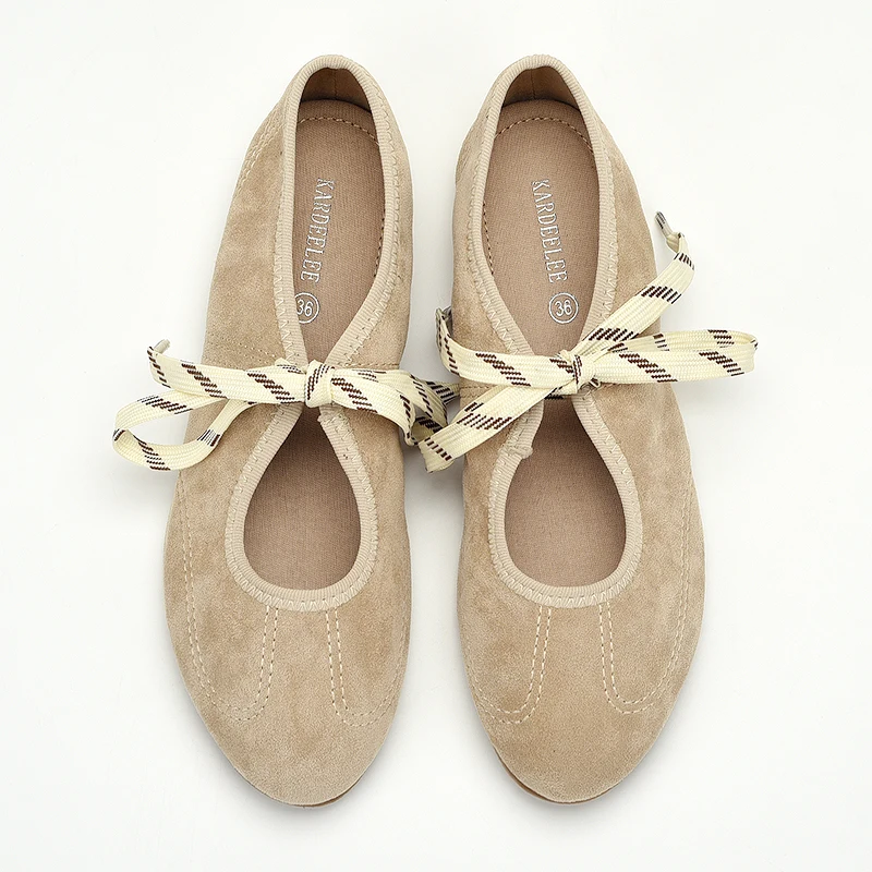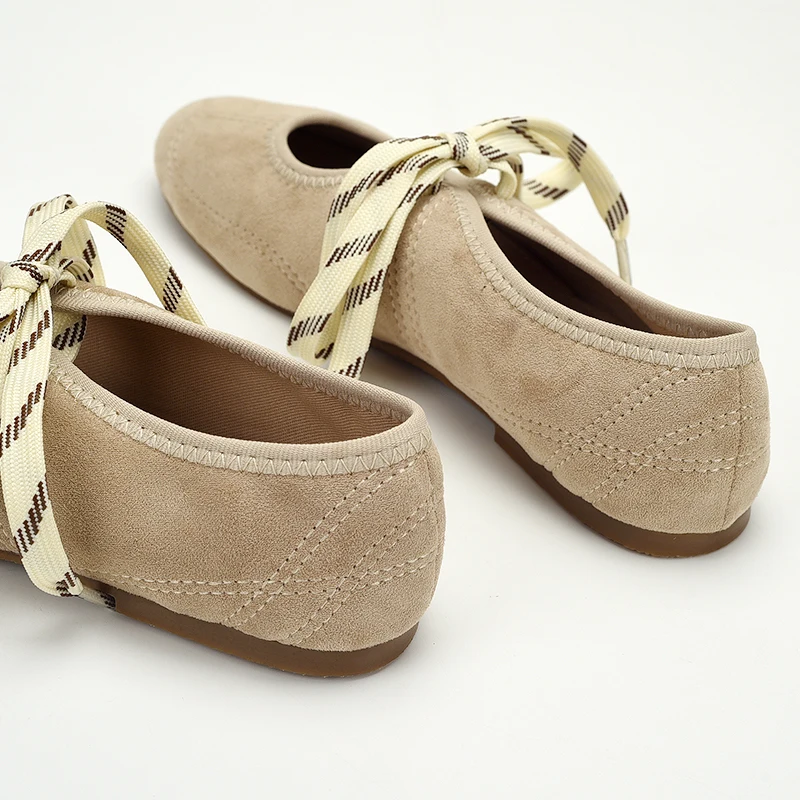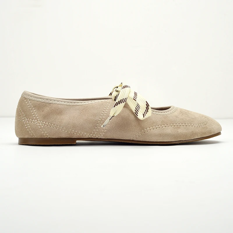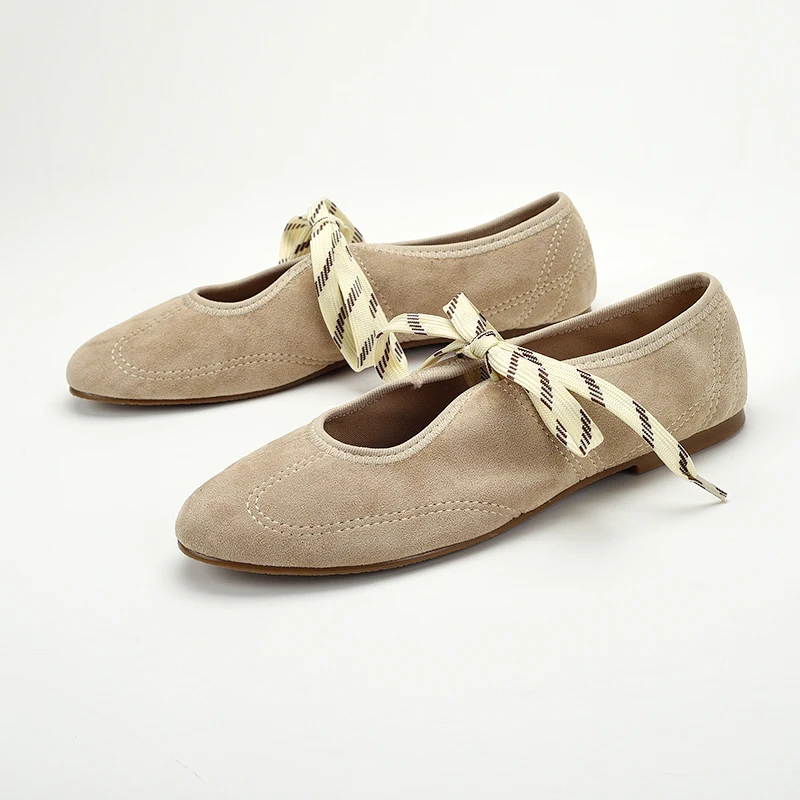 Chaussures plates de Ballet à lacets pour femmes, bout rond, Faux daim, chaussures décontractées pour dames, mocassins confortables à semelle souple peu profonde, nouveau