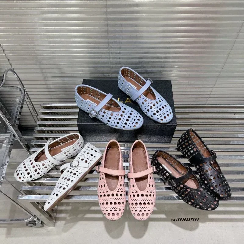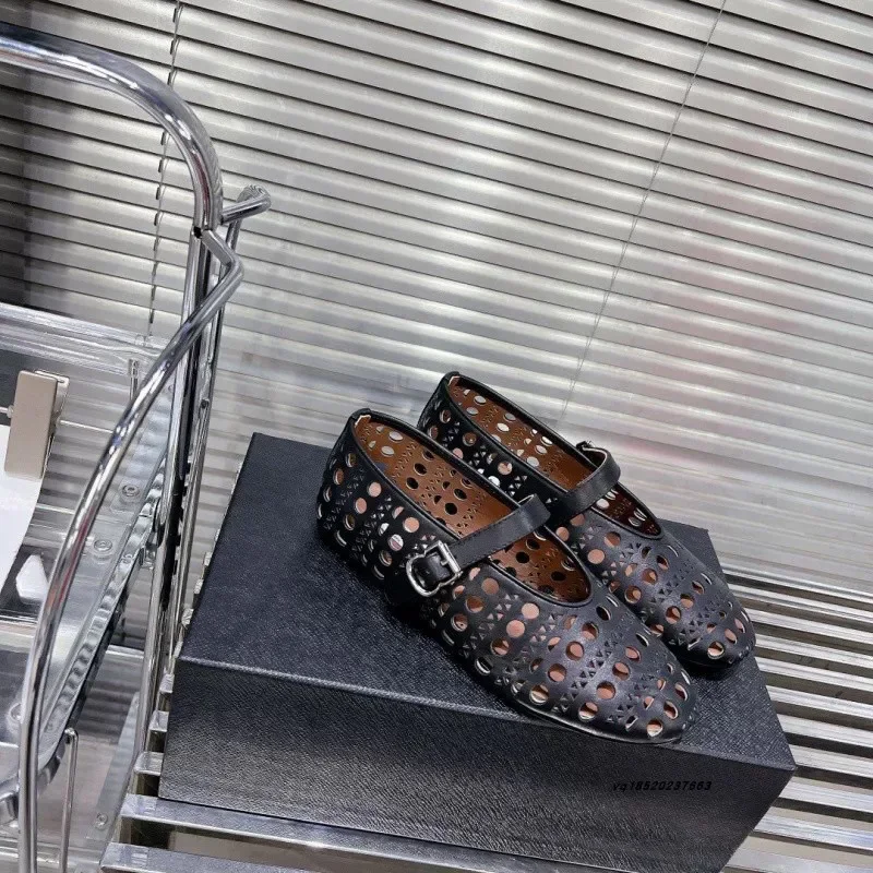Chaussures plates de Ballet pour femmes, respirantes, confortables, bout rond, semelle en caoutchouc à enfiler, légères, Design ajouré pour Dancin, nouvelle collection 2025 |