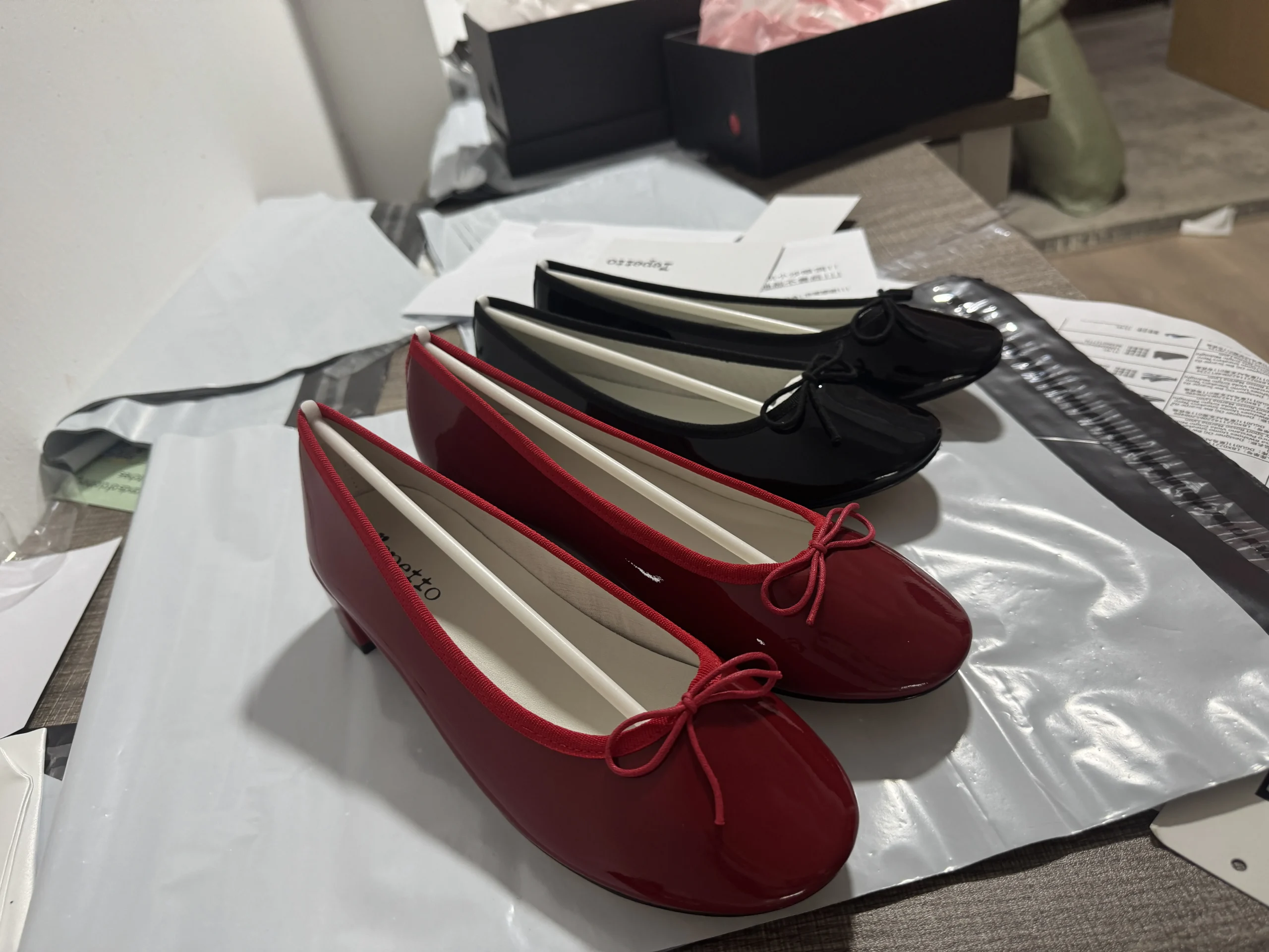 Chaussures plates de ballet rétro françaises à bout rond, talon bas, semelle peu profonde, cuir brillant, petites chaussures rouges, chaussures plates d'été pour femmes |