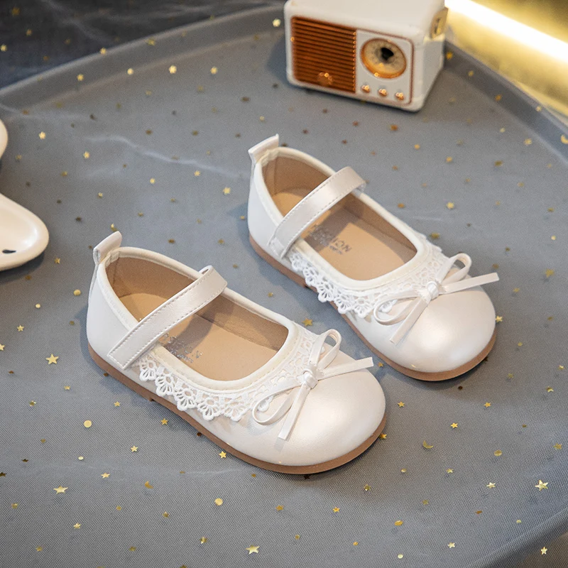 Chaussures plates en cuir pour filles, chaussures de Ballet princesse à la mode pour petits enfants, bord à volants doux, chaussures de Performance pour enfants