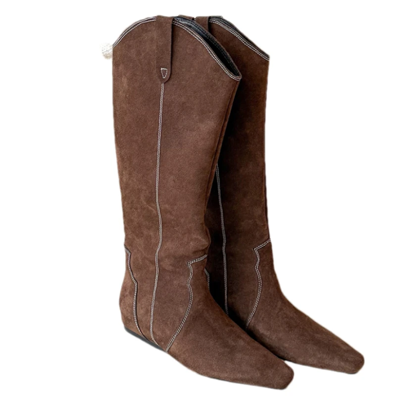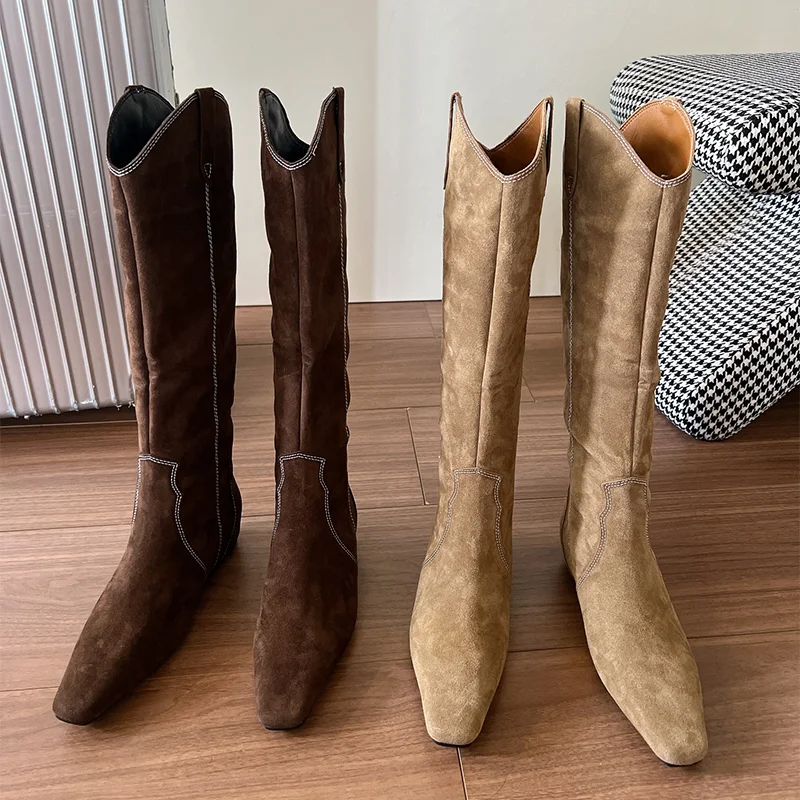 Chaussures plates femmes genou bottes hautes mode daim femme chaussures 2025 hiver Chelsea bottes nouvelle marche tendance robe longue Mujer De Botas