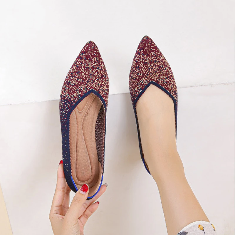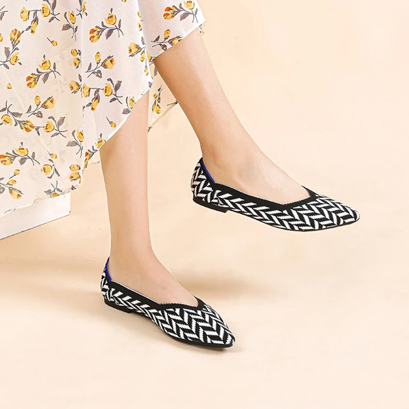 Chaussures plates tricotées respirantes pour femmes, divers motifs à la mode, belles couleurs, nouvelles chaussures, 2025 |