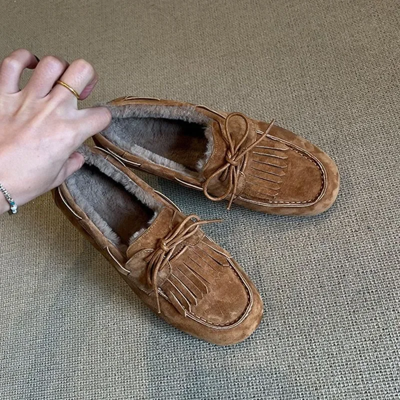 Chaussures pour femmes 2024 offre spéciale chaussures plates chaudes pour femmes chaussures plates décontractées quotidiennes femmes nœud papillon frange bout rond chaussures à fond souple dames
