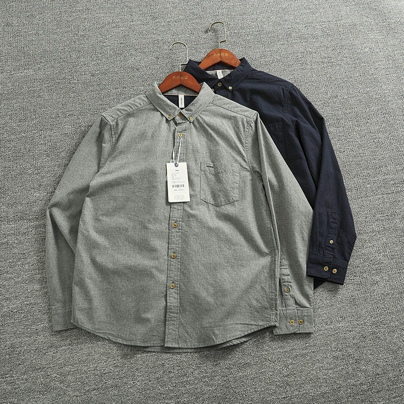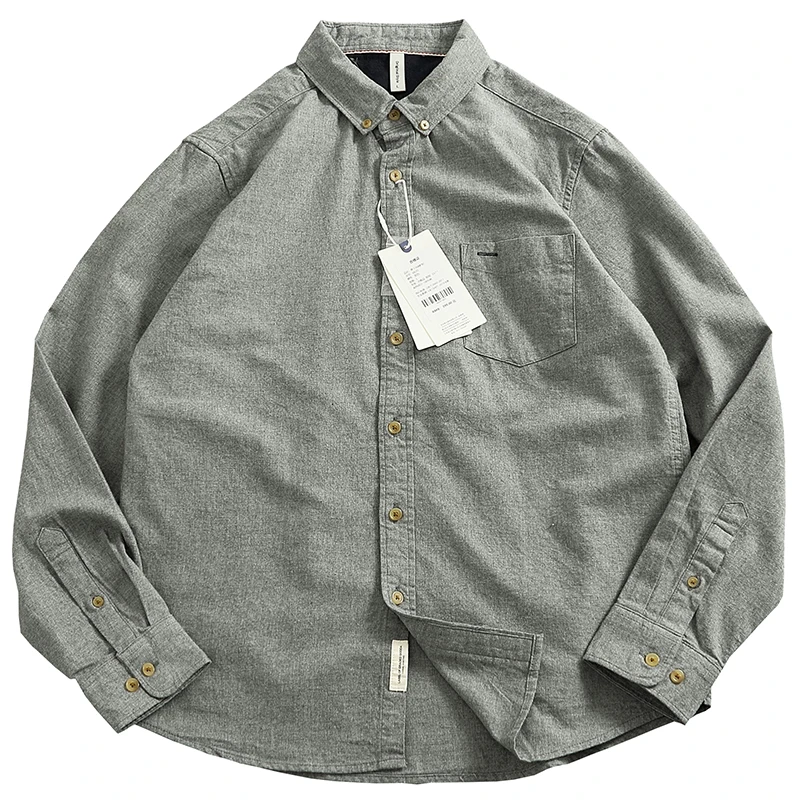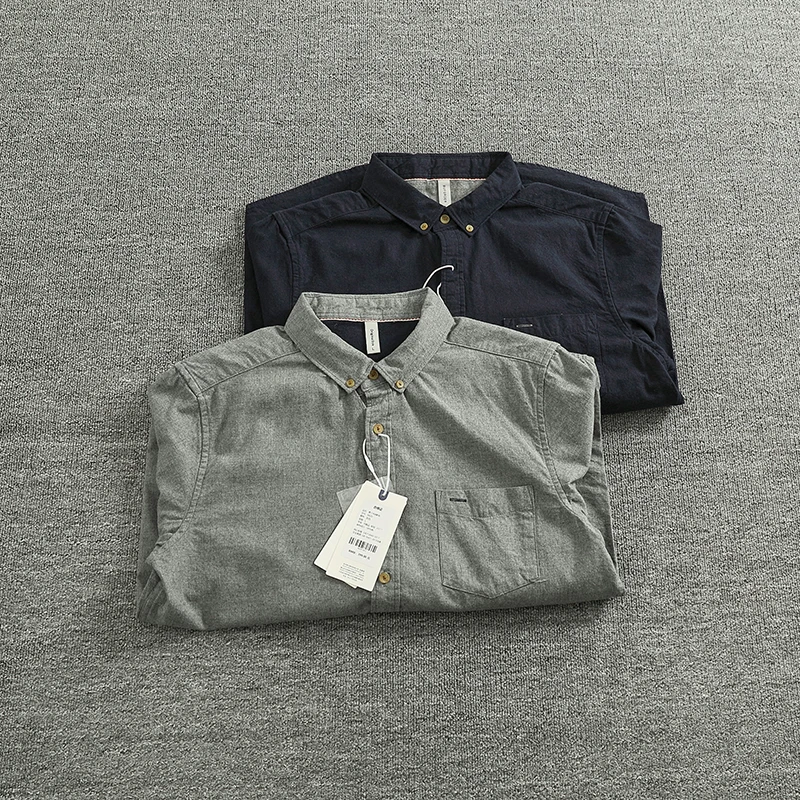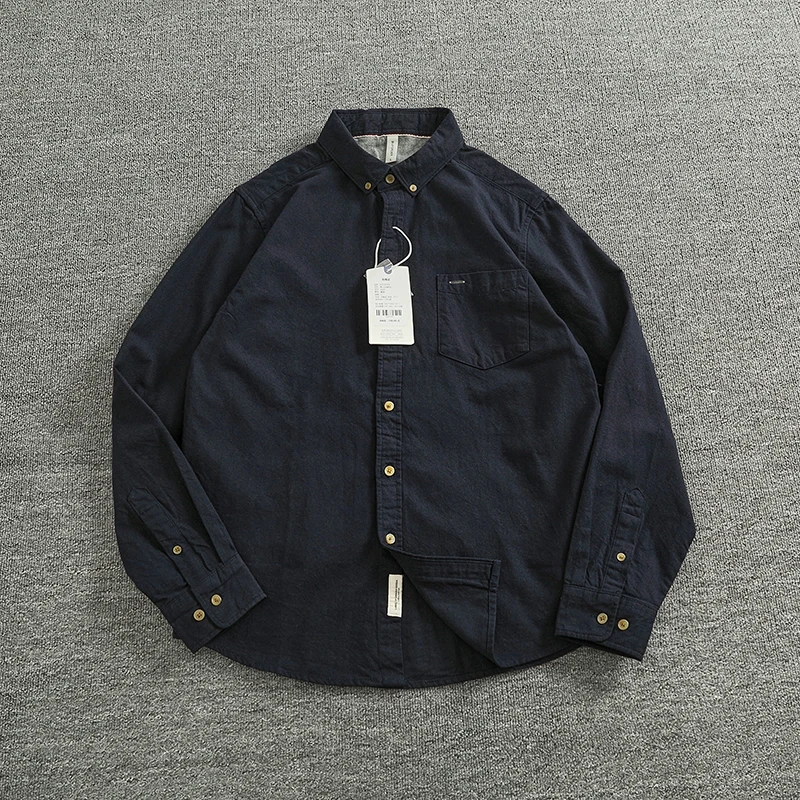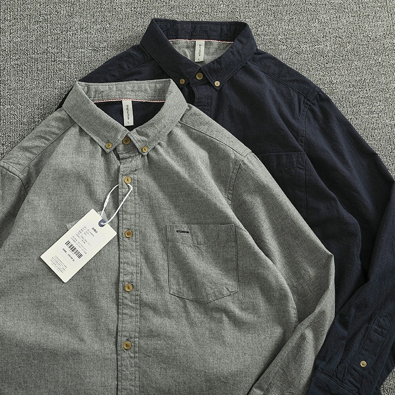 Chemise à manches longues brossée pour hommes, vêtements de travail jeunesse, chemise d'affaires légère, 100% coton, rétro japonais, printemps et automne, document solide |