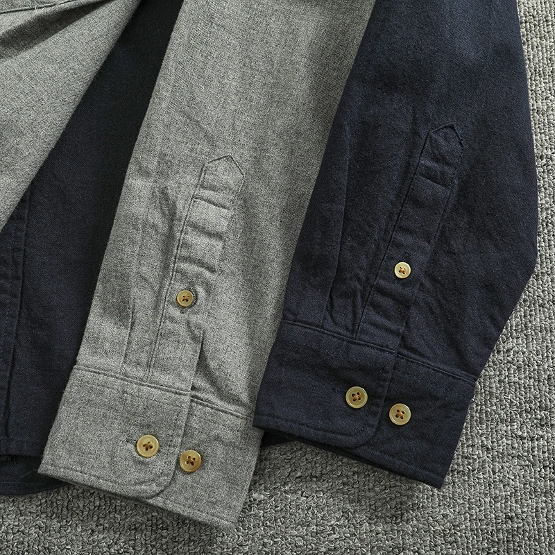 Chemise à manches longues brossée pour hommes, vêtements de travail jeunesse, chemise d’affaires légère, 100% coton, rétro japonais, printemps et automne, document solide