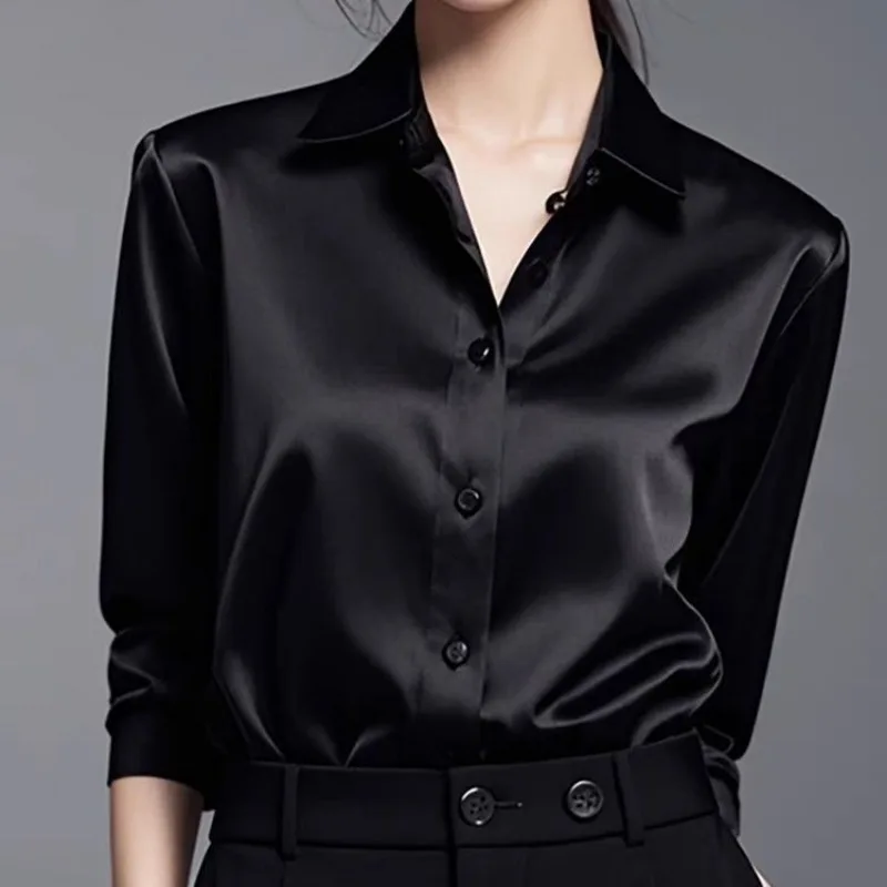 Chemise ample en soie à manches longues pour femmes, haut de couleur unie |
