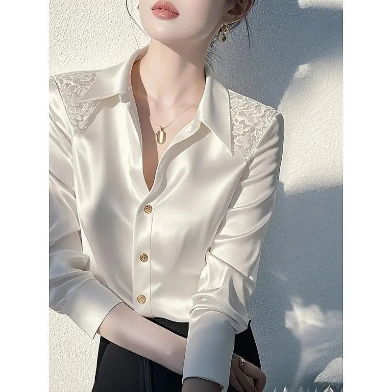 Chemise blanche avec sens du luxe, jeuneesse, tempérament élégant, adaptée comme couche de base pour porter à l'intérieur |