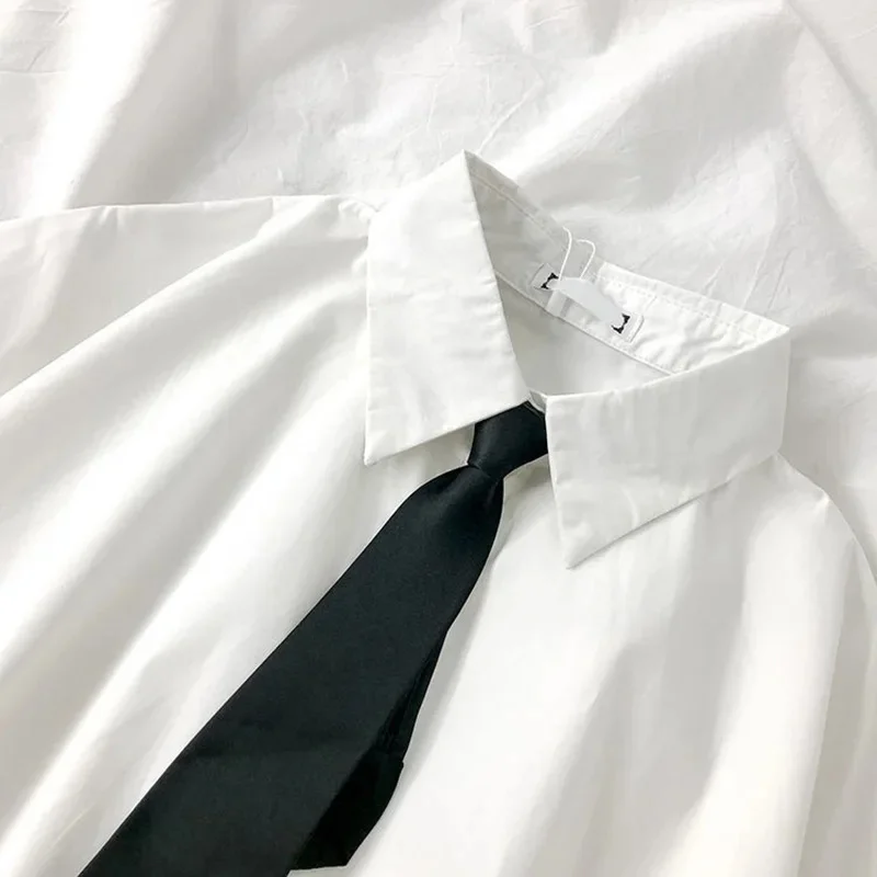 Chemise blanche pour femmes, chemisier à revers à manches courtes avec cravate, mode japonaise pour étudiantes, haut d’été de Style collège quotidien