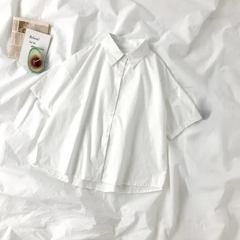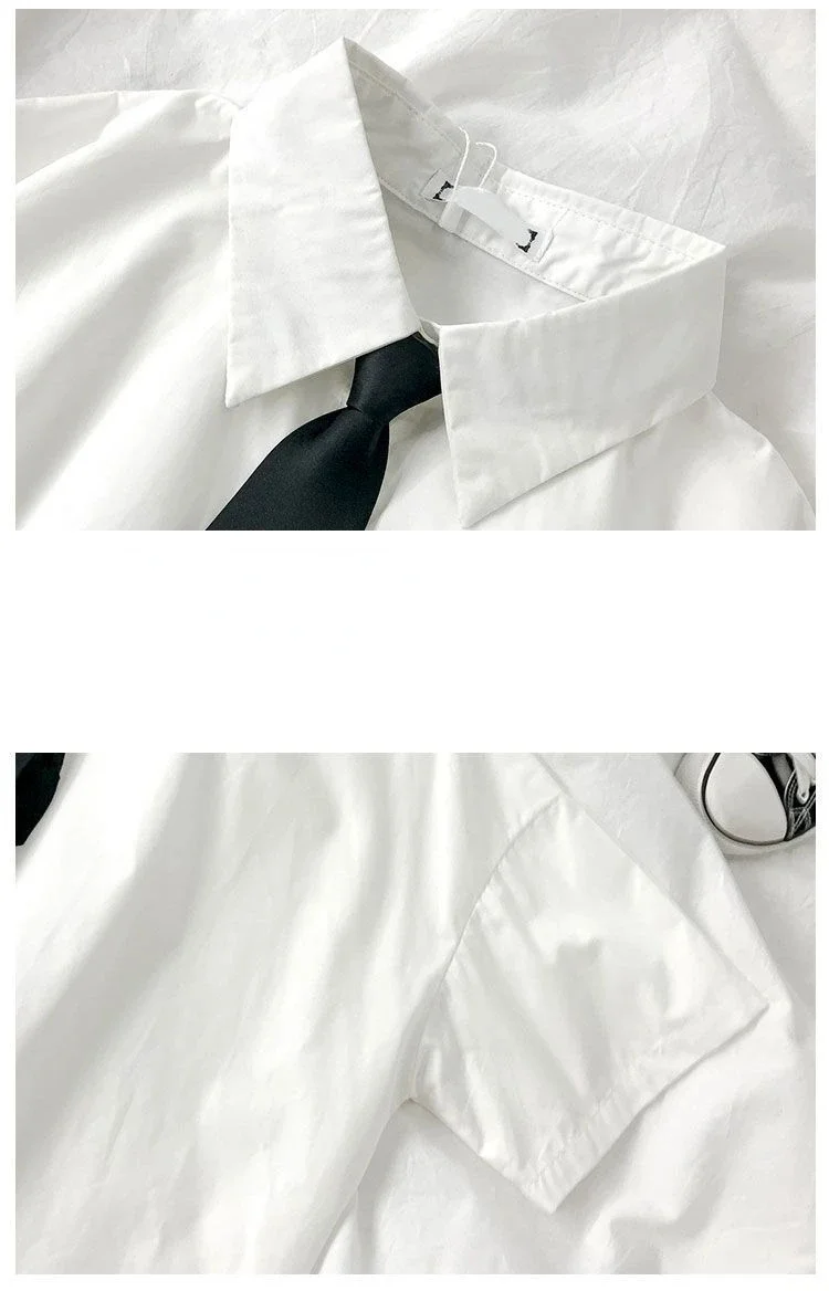 Chemise blanche pour femmes, chemisier à revers à manches courtes avec cravate, mode japonaise pour étudiantes, haut d'été de Style collège quotidien |