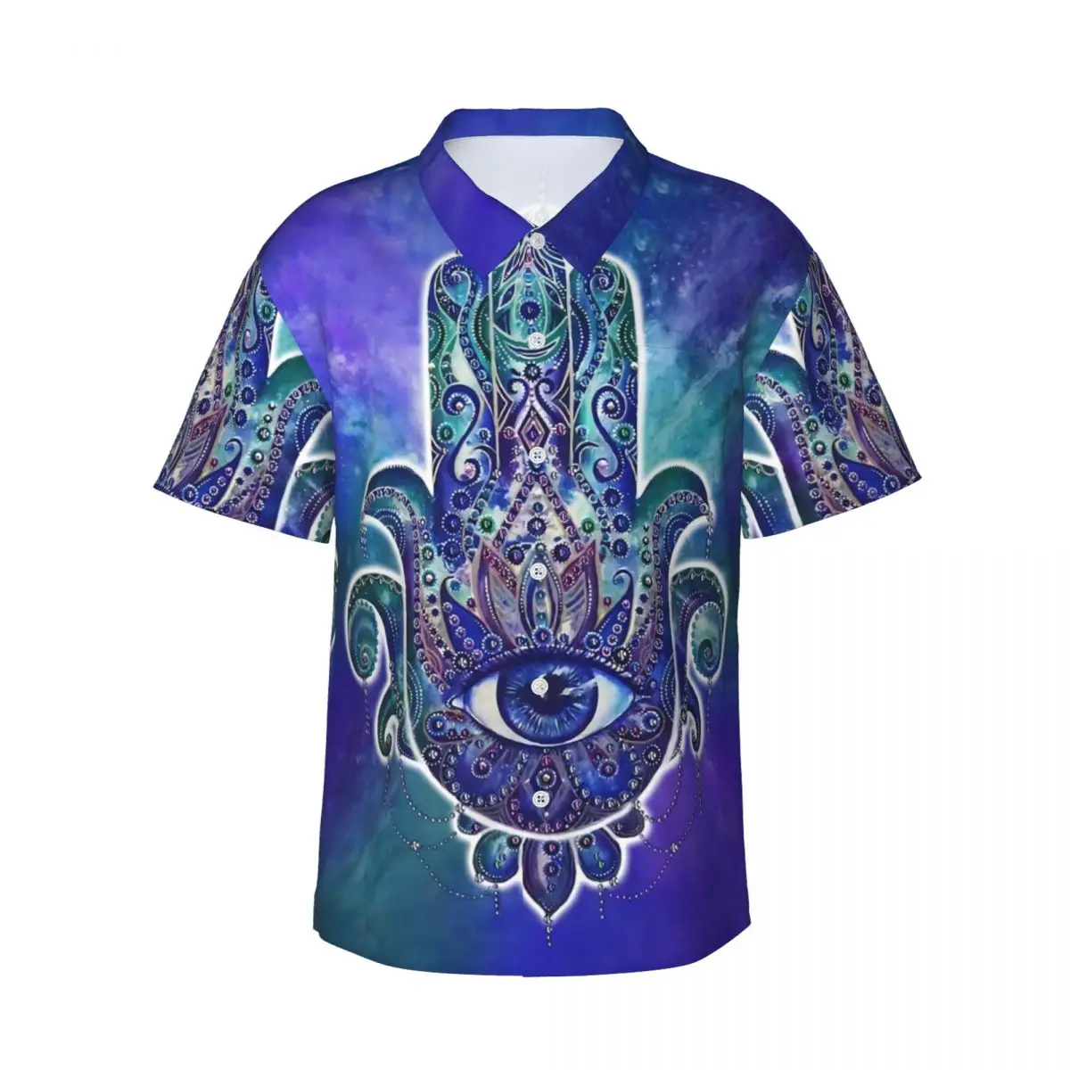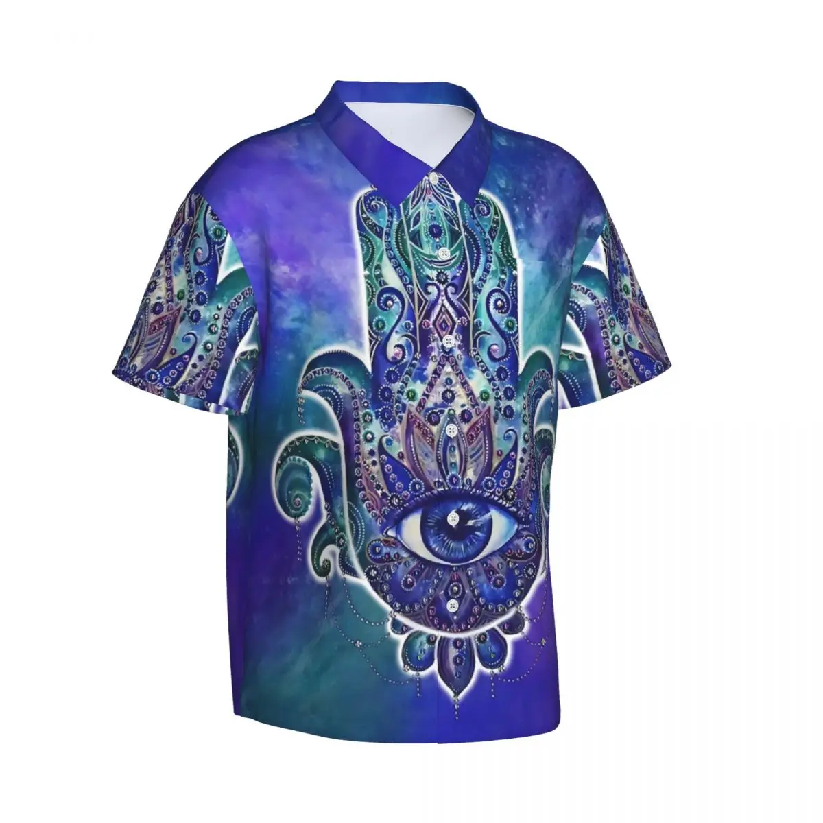 Chemise d'été plage rétro Hamsa main Blouses coloré Fatima Cool chemises décontractées homme à manches courtes Y2K hauts drôles |
