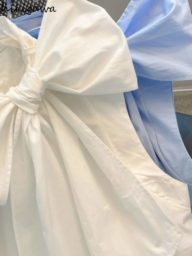 Chemisier blanc pour femmes 2025 Blusas Mujer De Moda pansement nœud sans manches chemises amples mode doux été Blouses hauts femme