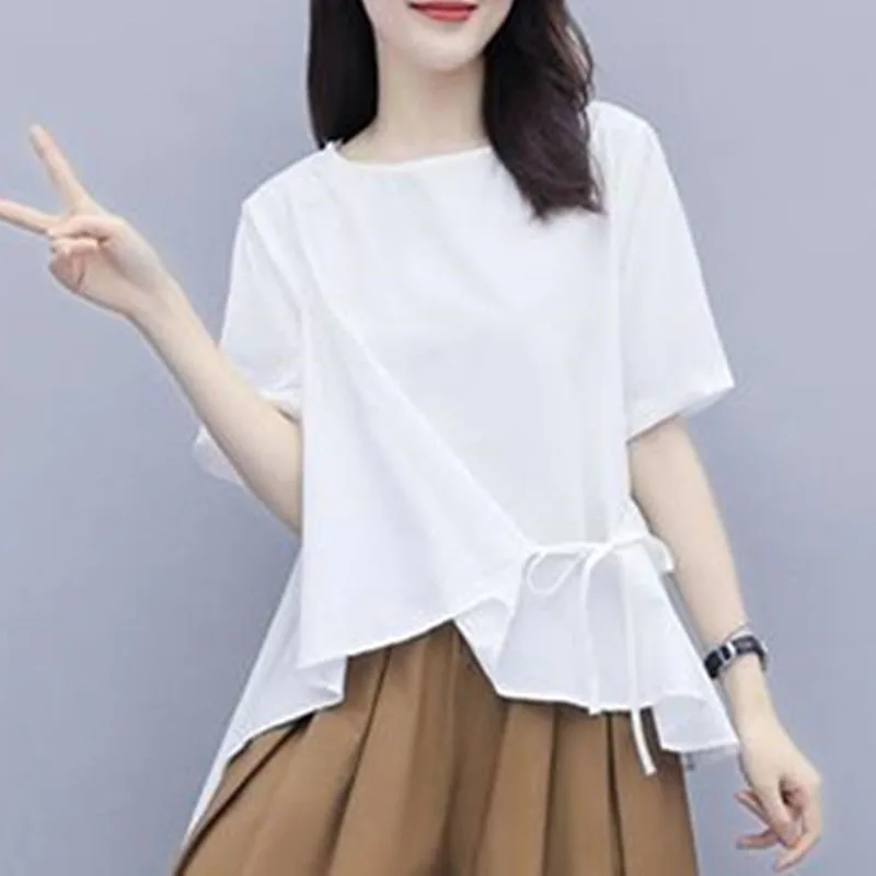 Chemisier irrégulier à lacets à col rond pour femmes, chemise d'été, pulls décontractés, vêtements à la mode, nouveau, 2023 |