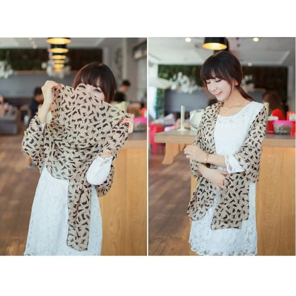 ChimWomen-Écharpe en mousseline de soie pour filles, graffiti, design de marque de luxe, chat de dessin animé imprimé, châle chaton, cadeau |