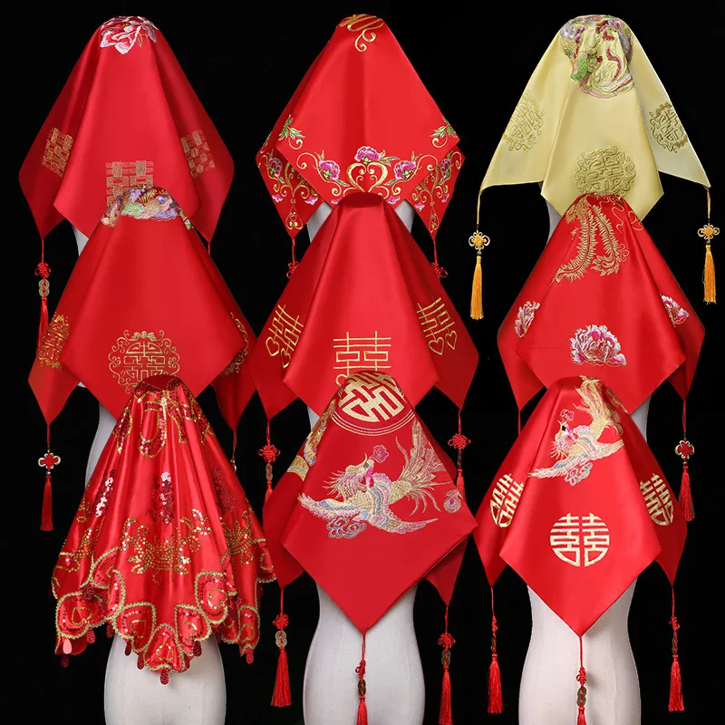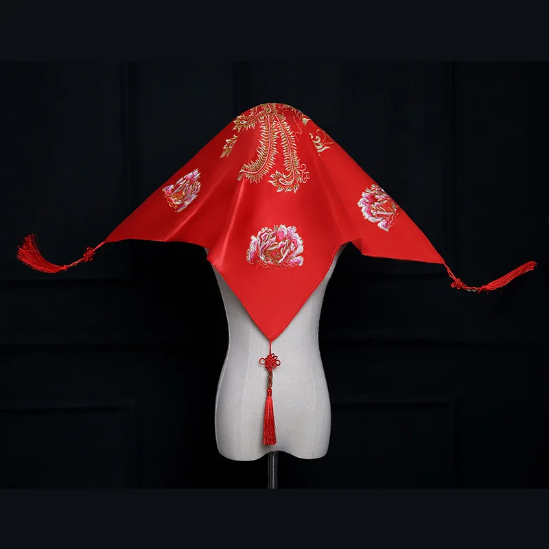 Chinois Traditiona mariage mariée rouge couvre-chef mariage foulard rouge foulard Style chinois Xiuhe costume mariage couvre-chef