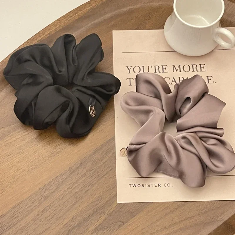 Chouchous en Satin de soie pour femmes, attaches noires pour filles et femmes, accessoires pour cheveux de couleur unie, pinces à cheveux pour femmes