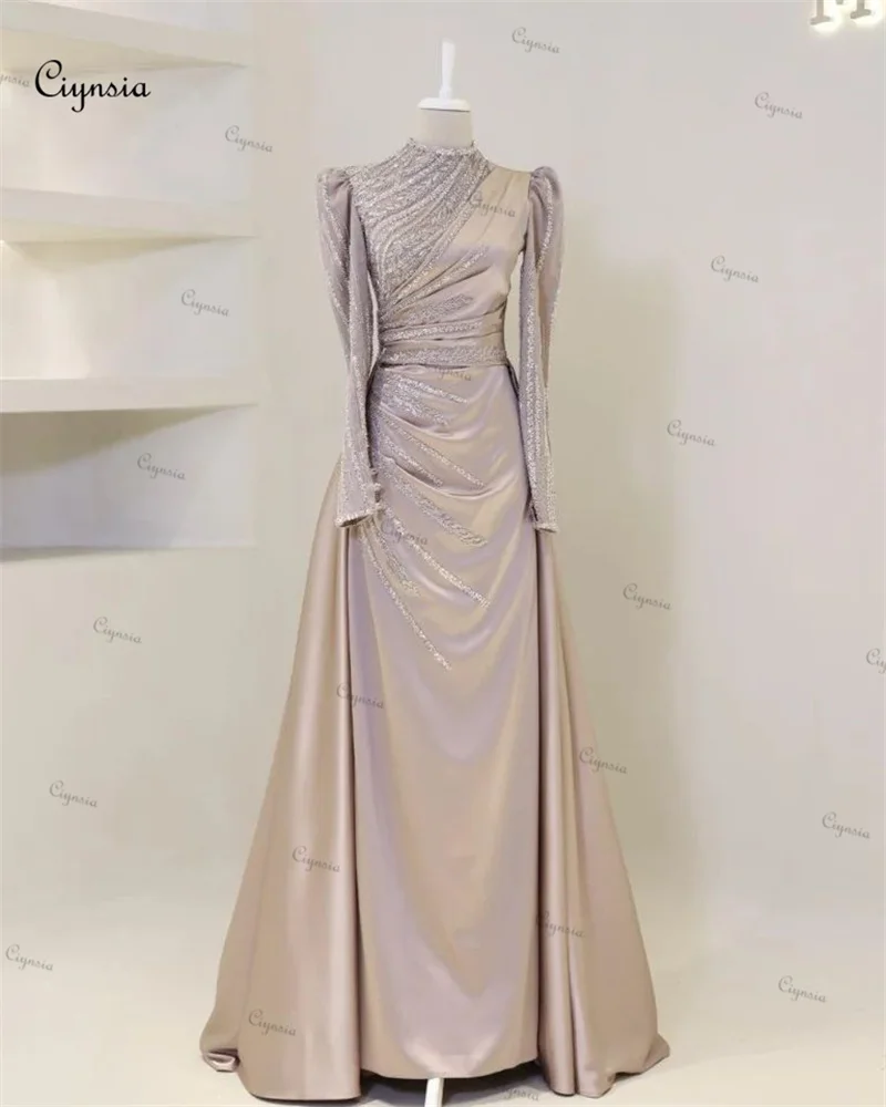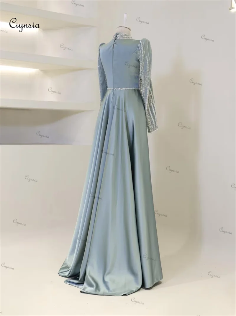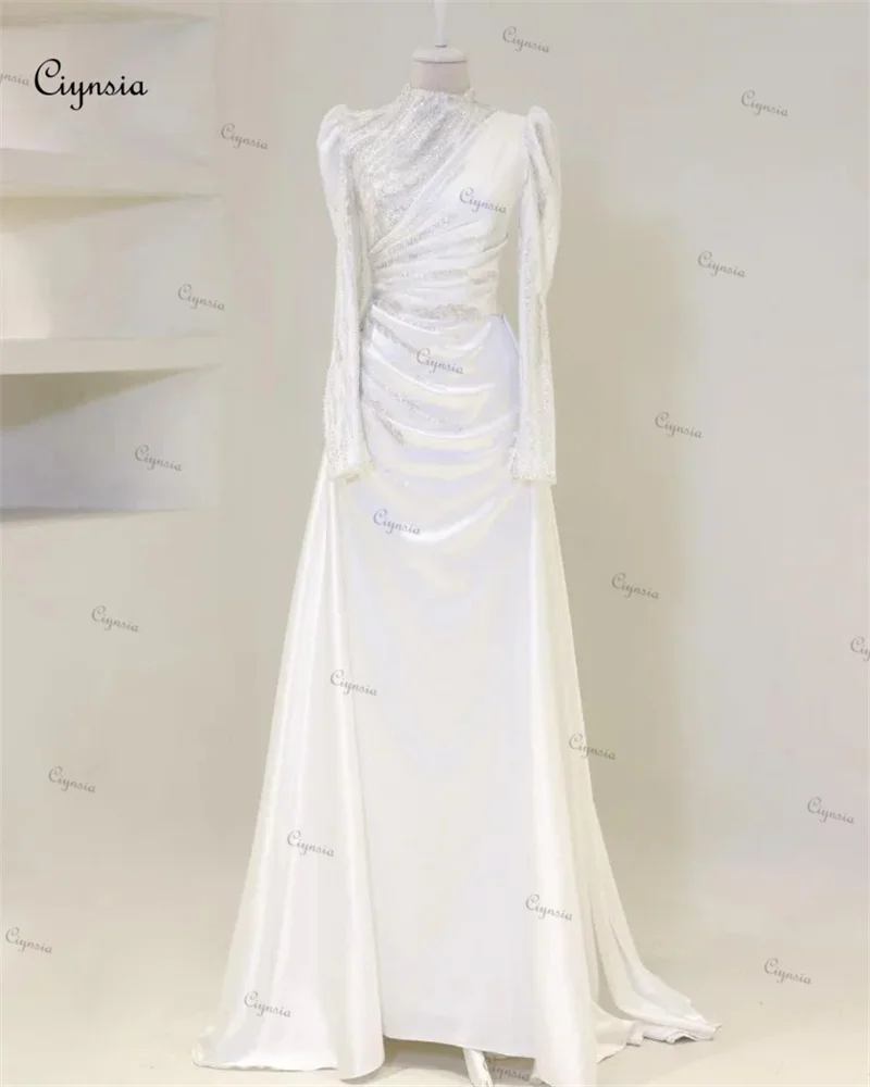 Ciynsia personnalisé islamique Hijab Robes De Soirée musulmanes sirène perlée dentelle à manches longues Robes De bal formelles dubaï Robes De Soirée