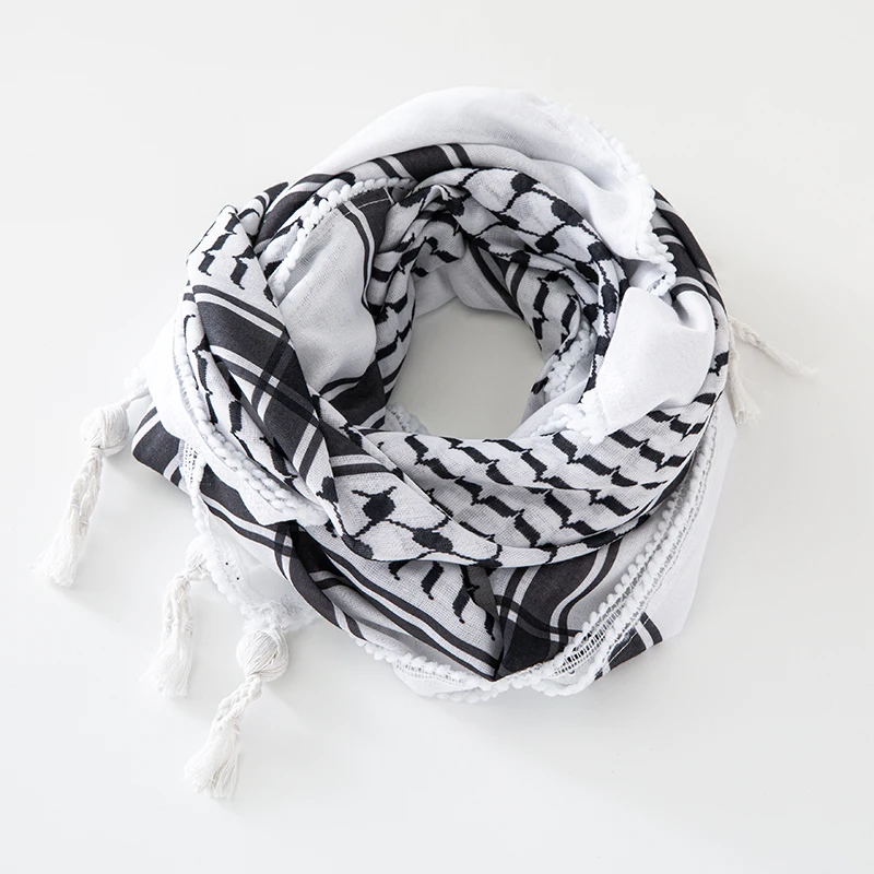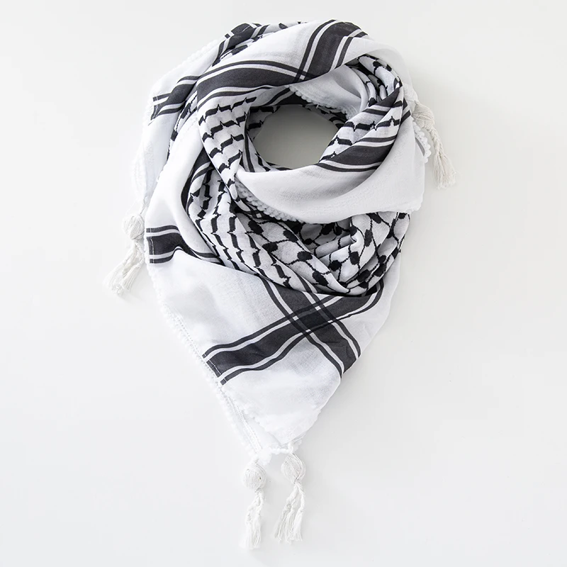 Classique Plaid imprimé Hijab écharpe pompon glands noir et blanc carré Shemagh musulman foulard femmes arabe Keffiyeh Hijabs |