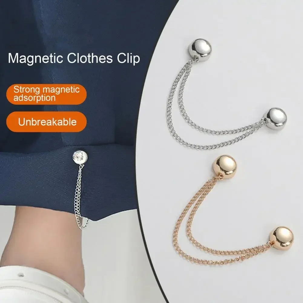 Clip magnétique multifonction Simple pour vêtements, avec chaîne, boutons métalliques, écharpe pour vêtements, jambes de pantalon, fixation de manchette, broche magnétique