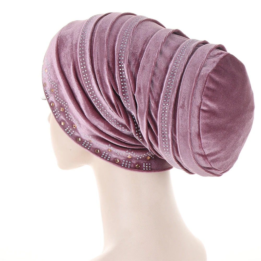 Coiffe en velours pour femmes musulmanes, foulard rond, chapeau Hijab, turban africain, bonnet, perte de cheveux, chimio, ample, bonnets baggy, accessoires pour cheveux